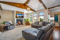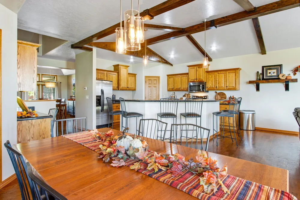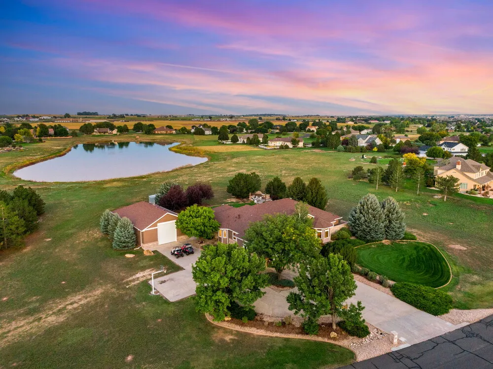 | Pre-Inspected with 1 Year Gold Plan Blue Ribbon Home Warranty. This sprawling ranch sits on a 2.53-acre lot and features nearly 6,000 total square feet with 5,829 finished. The property includes an oversized 628 sq. ft. attached garage plus a 1,560 sq. ft. detached RV/Boat/Toy garage/shop. Incredible finishes inside and out. The main level offers a spacious foyer, formal dining, formal living, laundry room, great room with gas fireplace, three guest bedrooms (one easily used as an executive office), and a primary suite with retreat, walk-in closet, and five-piece bath. The kitchen boasts cityscape cabinets, granite slab countertops, a large center island, pantry, and stainless-steel appliances. The professionally finished basement includes three recreation spaces, a family room with a second gas fireplace, a flex room, and two additional bedrooms. Two high-efficiency furnaces, two water heaters, two AC units, and many more upgrades throughout, including hardwood floors, vaulted ceilings, iron railing, tile, six-panel doors, and a premium lighting package. The exterior features mature landscaping, a front courtyard, and a large covered backyard patio with beautiful lake views, sprinkler/drip system, room for gardens, outdoor bar and water feature. The west-facing front provides plenty of natural sunlight and snow melt for the driveway, plus stunning nightly sunsets, while the east-facing back offers cool summer shade, lake views, and breathtaking sunrises. | |