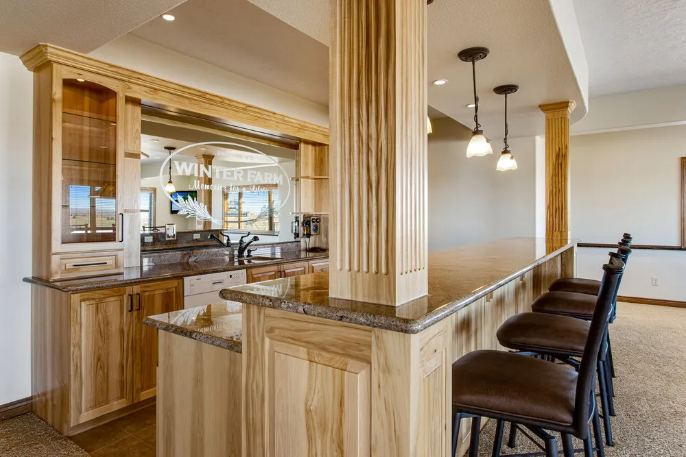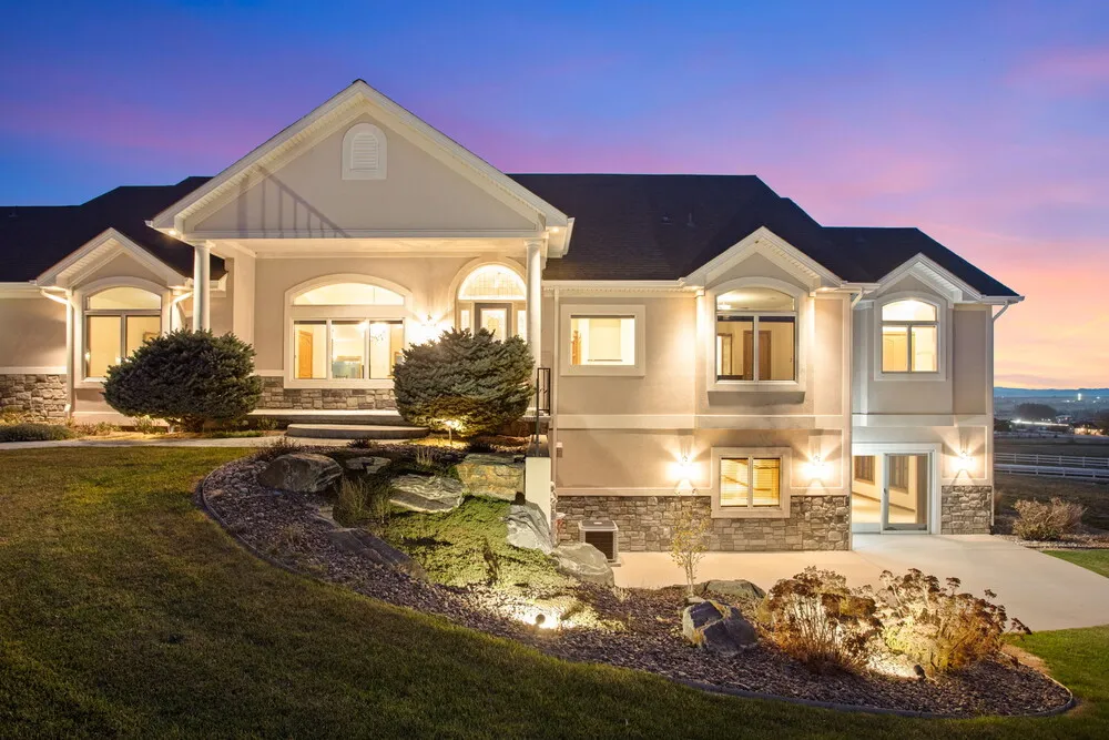| This incredible estate showcases some of the most breathtaking Rocky Mountain views you will ever experience and offers an unmatched combination of luxury living, expansive space, and top-tier amenities. Featuring a total of 3,751 square feet of heated and impeccably maintained garage space, this property is built for those who value storage, hobby areas, and room for every vehicle and toy. The attached, fully finished, heated 4-car garage provides 1,440 sq. ft., while the primary detached and heated RV/garage building offers 1,208 sq. ft. with two overhead doors for easy access. A second detached 1,103 sq. ft. garage adds even more room for toys, equipment, or workshop needs. The sprawling ranch-style primary residence delivers something for everyone with 3,431 sq. ft. on the main level, including an elevator, formal dining room, office or 5th bedroom, greeting bar, front office or optional fifth bedroom, family room, and a luxurious primary suite with retreat space, a 5-piece spa bath, walk-in closet, and a second laundry. The open kitchen includes a center island, corner pantry, and abundant cabinetry and counter space. A guest bedroom sits near a 3/4 bath, plus there is a guest half bath and a large laundry area with freezer, washer, and dryer included. The walkout basement features 3,366 square feet, 9' ceilings, a dedicated theater, wet bar/kitchenette, billiard area, two additional spacious bedrooms, and two baths. Nestled on 4.65 acres, the exterior offers patios on all sides, mature landscaping with sprinkler and drip systems, two water features, and unobstructed views in every direction. Additional highlights include a high-efficiency furnace, two water heaters, central air, and a whole-home generator. |