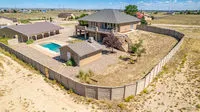| SOLD for: $759,000 on 02/15/2022 Large 4 bedroom/3 bathroom home with finished walkout basement on 3.55 acres. Conveniently designed oversized 5 car attached garage and 8+ detached garage with workshop! Swimming pool to help you cool off on hot days includes large pool house with kitchenette and 3/4 bath. Main level features a spacious living room with vaulted ceiling, lots of windows for natural light and a fireplace. Kitchen includes appliances, recessed and pendant lighting, breakfast bar and adjoining dining area. Main level includes laundry room with desk area, lots of cabinets and a mud sink. Primary bedroom with large walk-in closet, jetted tub, separate vanity's (one with make-up area). private toilet/bidet and a walk-out from the bedroom to the covered patio. Basement features a family room, 2nd kitchen and 2 additional bedrooms. Additional laundry area in basement. Lots of room for your cars and toys. Enjoy unlimited entertaining with great mountain views including Pikes Peak from the large covered deck which over looks the pool. New carpet, interior paint, and roof 8/21. Fantastic features for everyone to enjoy! |