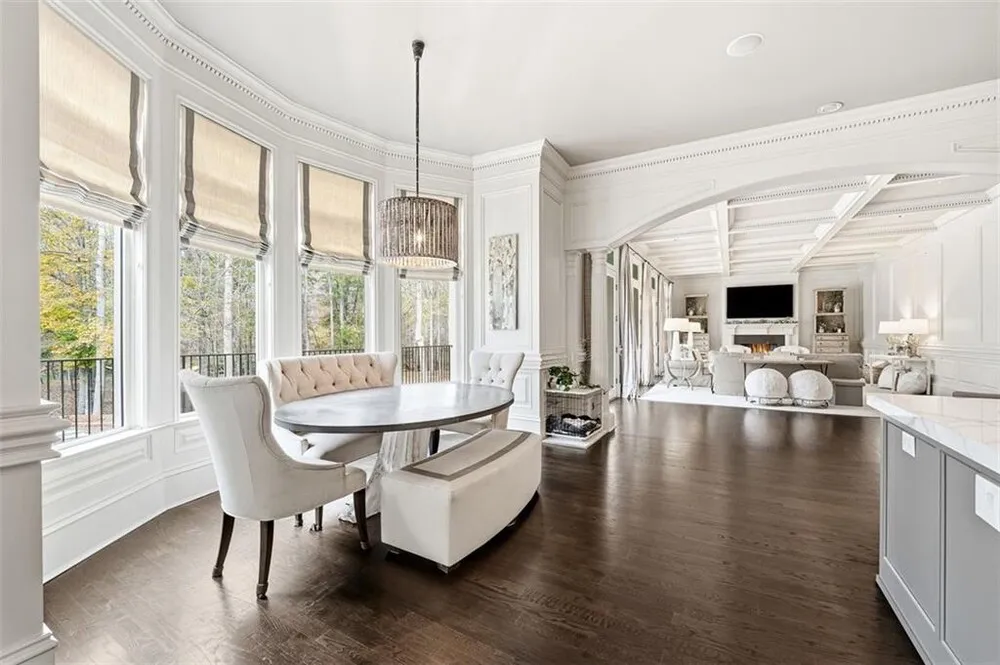 | Commanding 2.16 acres across two cul-de-sac lots and 275 feet of Chattahoochee River frontage, this extraordinary estate in gated Winfield on the River offers a level of privacy, scale, and togetherness that defines exceptional living. Inside, 12,717 SF of thoughtfully designed living space balances grandeur with everyday comfort. Classic Southern elegance shows up in the multi-layer trim profiles, layered millwork and molding, tall ceilings, a sweeping curved staircase, arched openings, and generously scaled rooms. Columned, double-height front porches, custom stone-inset fireplaces, and hardwood floors throughout work together to create a residence that feels both stately and warmly inviting. The river is the quiet centerpiece of this estate, a constant, calming presence, with main living spaces oriented to enjoy its changing light and movement. An oversized chef’s kitchen with grand center island and bayed breakfast nook opens to the family room, where floor-to-ceiling windows and French doors lead to expansive rear decks overlooking the river and grounds. Formal living and dining rooms, each with a fireplace, anchor the main level for holidays and celebrations, while a richly paneled office with large river-facing windows offers an inspiring setting. The primary suite spans the rear of the home, with full-length windows framing continuous, unobstructed views of the river. It includes a private fireplace, sitting area, foyer, room-sized walk-in closet, and spa-like bath with freestanding tub. Three additional spacious secondary bedrooms, an immense laundry room, and bonus storage ensure everyone has room. The double-height front porch gives two of the secondary bedrooms French door access to generous verandas ideal for reading or unwinding in the fresh air. The terrace level is designed for effortless entertaining and multi-generational living, with a full second kitchen and bar, wine cellar, gym, theater space, multiple gathering areas, and a private guest or in-law suite with its own laundry. Floor-to-ceiling folding glass doors open the space to the pool terrace and backyard, allowing parties and family gatherings to flow seamlessly. Resort-caliber amenities continue outside, where the pool, sun shelf, waterfall features and hot tub are paired with a large Isokern fireplace and seating area. A 6th bedroom en suite and pool entertainment area is tucked beneath the garages with oversized projector screen, and floor-to-ceiling folding glass doors to watch movies or the big game while you’re in the pool or sitting fireside. Extensive upper and lower covered decks provide multiple options for lounging and dining amidst the river and treetops. Beyond the hardscape, the land itself is a showpiece. Towering hardwoods offer shade and limbs for forts, rope swings, and zip lines. Flat, grassy lawns—perfect for soccer games, trampolines and slip-and-slides—are kept lush by a dedicated irrigation well. A separate wooded side yard once discreetly housed a full-size batting cage. A stone firepit and seating area sit close to the river’s edge, inviting s’mores, stargazing, and quiet conversation. Easy drop-in access to the river makes kayaking, fishing, swimming, and taking a natural “cold plunge” a simple part of everyday life. The spacious motor court is a safe, contained spot to play, learn to ride bikes, and shoot hoops. Six full-size garages provide rare capacity for every car, kayak, bike, hobby, and passion project your family will dream up. Major recent improvements include new roof, spray foam insulation, windows, exterior paint, garage doors, and a deep well motor. All of this is within at beautiful gated community, just minutes from top-rated schools, The Forum, and the Atlanta Athletic Club—yet a world away in privacy and setting. Elegant yet relaxed, substantial yet welcoming, this riverfront estate offers the rare combination of luxury, land, and the opportunity to live life well. |