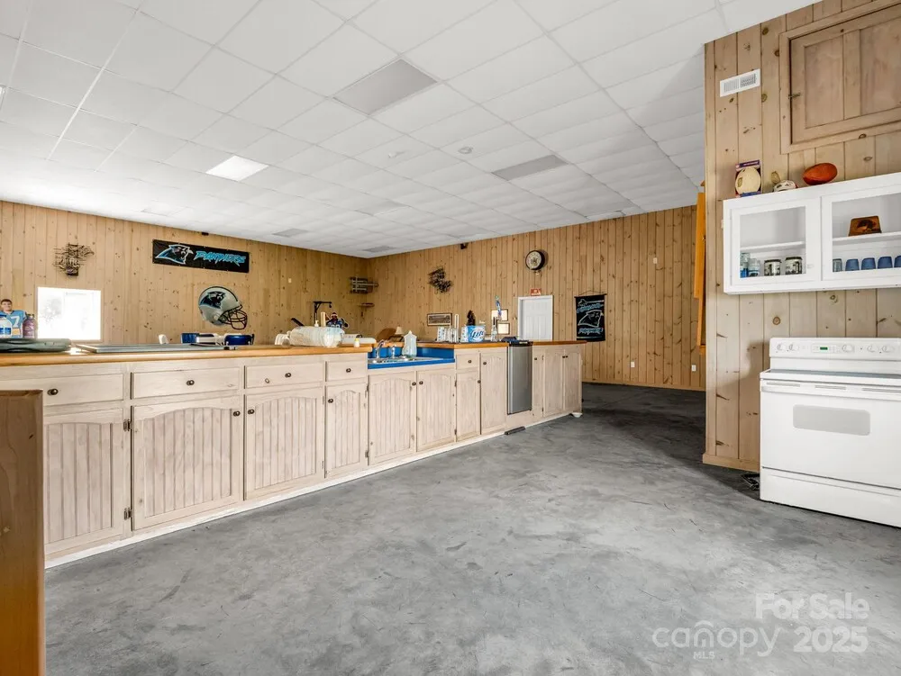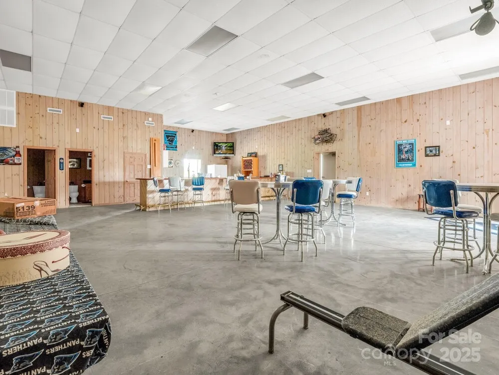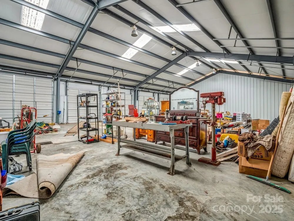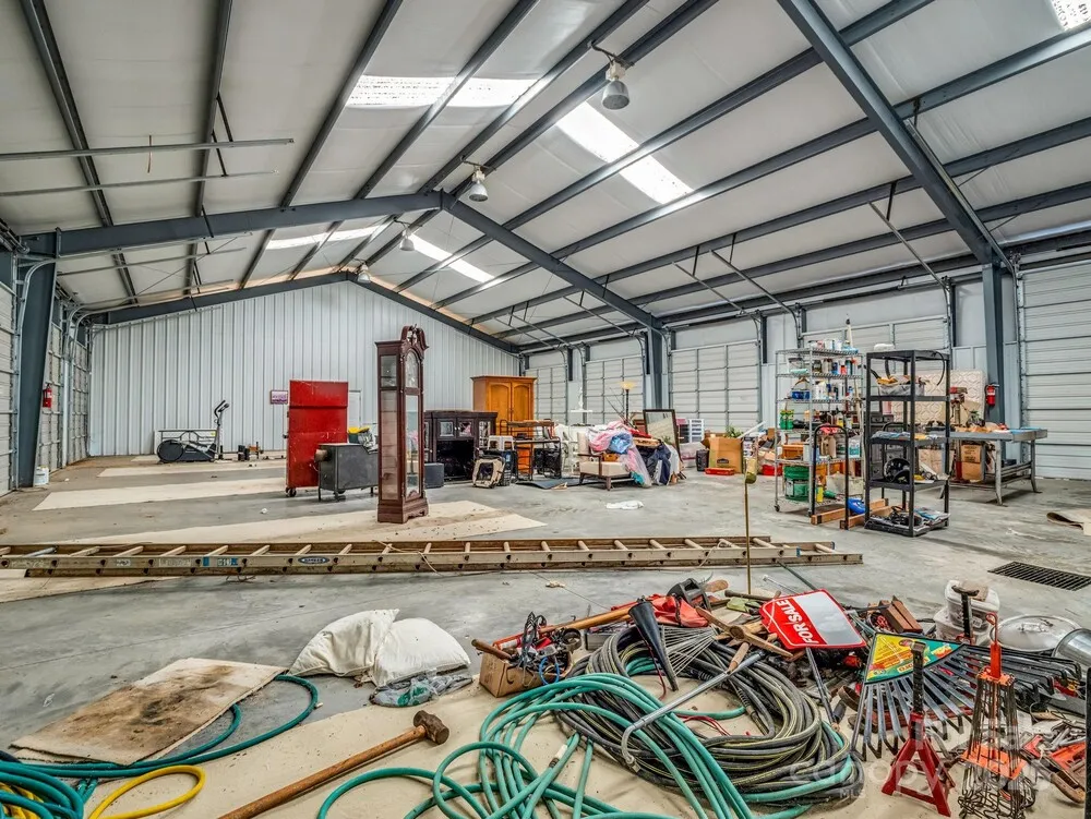 | 60-Acre private retreat, minutes from downtown Rutherfordton. Ideal for a private estate, recreational getaway, or event venue, this land offers limitless potential. Land features a mix of mature hardwoods—oak, cedar, pine, and birch—ideal for logging, plus fields of Kentucky bluegrass. Wildlife enthusiasts will love the year-round deer sightings. A peaceful pond adds to the natural beauty and offers opportunities for fishing or quiet reflection. A separate shed near the pond features a BBQ pit capable of roasting two whole pigs, covered grilling space, and is wired for electricity—ideal for cookouts, celebrations, or relaxed evenings by the water. A 5,081 sq ft multi-use workshop and event space, complete with polished concrete floors, tall ceilings, skylights, and four garage bays that can accommodate up to 10 vehicles. Inside, you'll find a bar area, full kitchen, one full bath, and two half baths—perfect for hosting gatherings or converting into a dream workshop or man cave. |