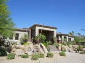 | SOLD!! Custom built privately gated estate surrounded by views of Mummy Mtn., Quartz Mtn. and Camelback Mtn. Estate offers both high tech systems and upgrades throughout. Sony digital surround sound, Central Lite control system. Chef's gourmet kitchen with Wolf appliances and gas range open to spacious family room with built-in entertainment center. Luxurious master suite with two-way fireplace, master bath w/all the amenities, his and hers walk-ins. Media room, guest suite, executive office. Tropical backyard w negative edge pool, waterfall and outdoor kitchen. Travertine throughout, Berber carpet, granite, alder, Upgrades everywhere you look. Fully equipped guest house with additional 4/5 car garage/ game room. You will not be disappointed!! |
