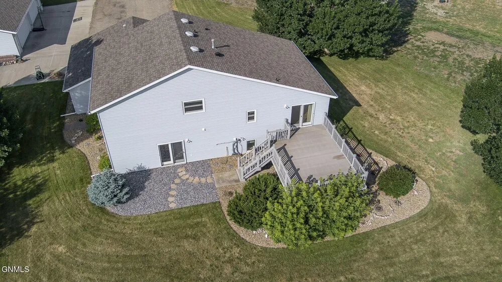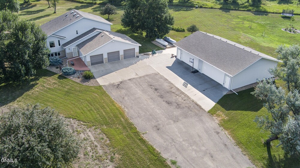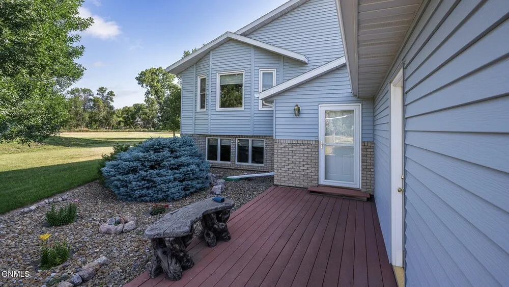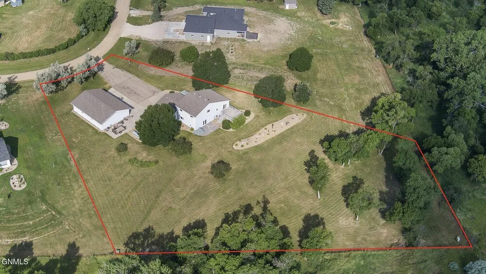Welcome to this spacious 2,878 sq ft one owner split-level home nestled on 1.6 acres of serene privacy with plenty of wildlife to see. This well-maintained property offers 4 bedrooms, 3 bathrooms (two have heated tile), and a flowing layout perfect for comfortable living and plenty of room for everyone to spread out. The main living area has a large dining and kitchen area that has held many family get togethers. The heart of the home flows onto a large trex deck overlooking a peaceful backyard—perfect for morning coffee, evening gatherings, or just soaking in the serenity of your own space. In addition to the attached oversized 3-stall garage, you'll love the impressive 1,800 sq ft detached garage—fully finished and heated—providing endless possibilities for a workshop, up to six vehicles, toy storage, or hobby space. Enjoy the best of both worlds: peaceful, private living with ample room to spread out, all just minutes from Bismarck amenities and the Missouri River is just couple minutes away and you could be relaxing on river. This property is a rare find with space, flexibility, and functionality. Call a REALTOR today to see this property!!
