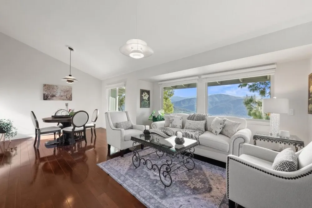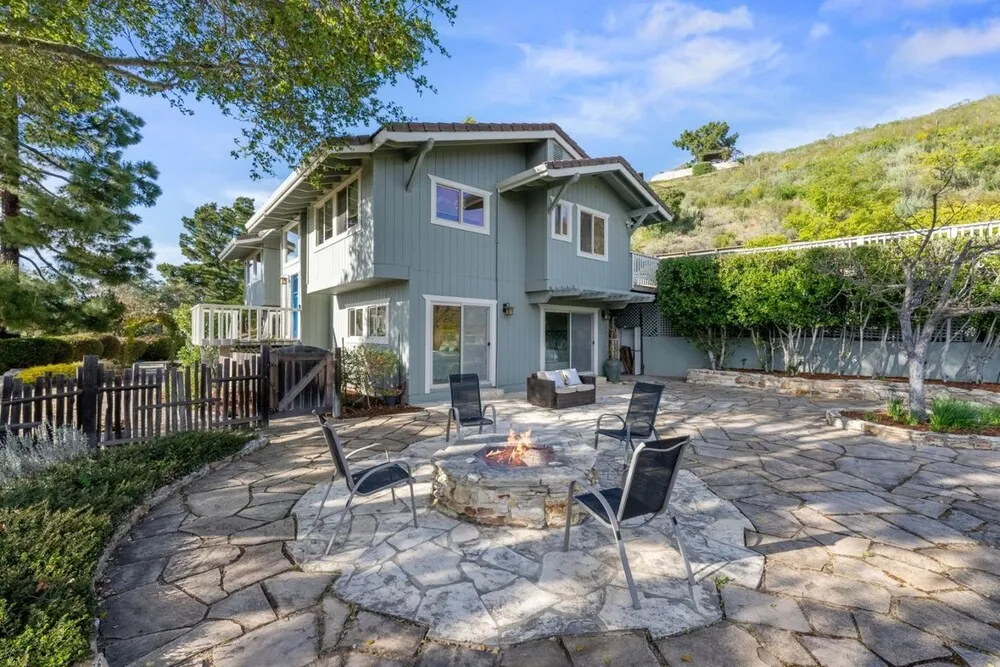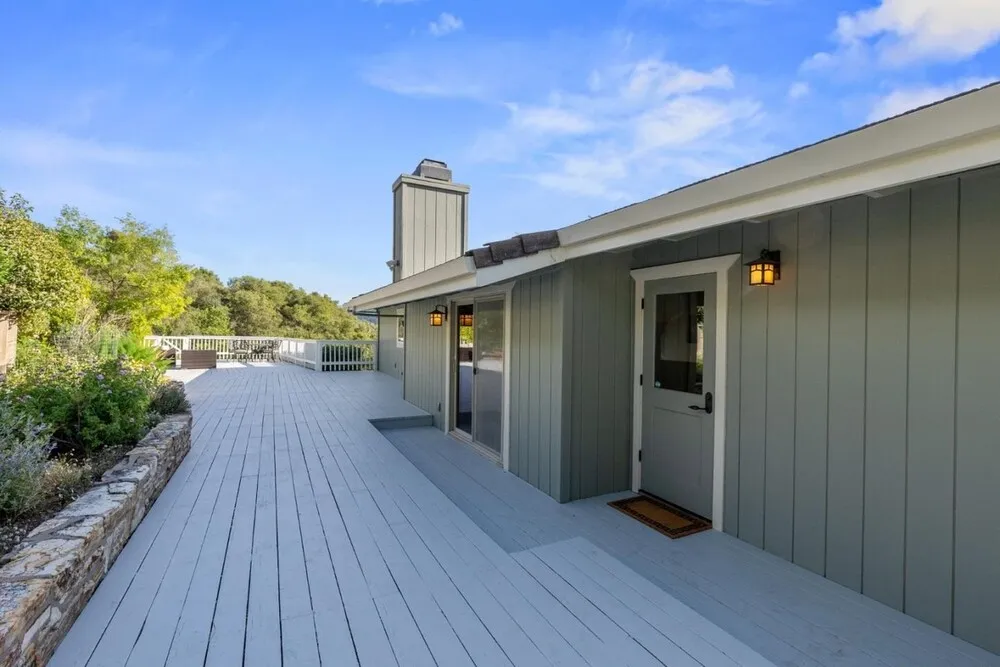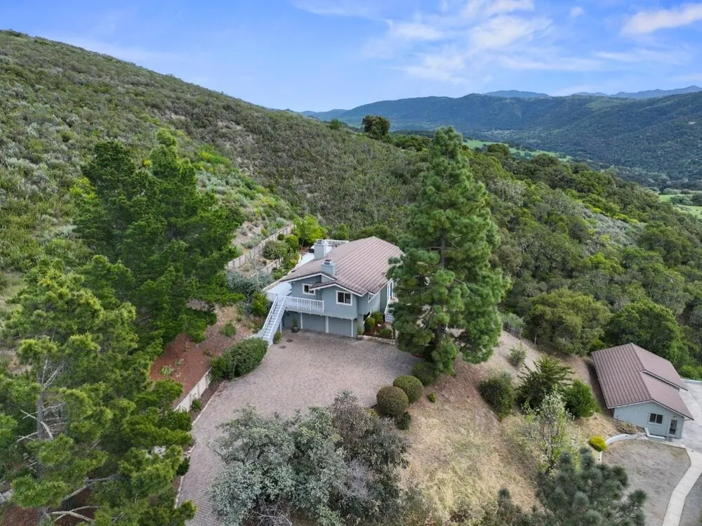 | Tucked away on over two acres of idyllic serene landscape, this magical property has been thoughtfully designed to capture breathtaking panoramic views of picturesque Carmel Valley. Rolling grassy hills, magnificent oak trees and open blue skies dazzle the senses to paint a virtual plein air masterpiece. Inside you find a well-appointed home with all the comforts of modern life, including dual-pane windows, air conditioning, cherry hardwood floors and two stone fireplaces. The fabulous kitchen is equipped with granite counters and high-end stainless appliances including Sub-Zero fridge and Viking range. Retreat to your luxurious primary ensuite boasting ample closet space, dual sinks, travertine tile, separate shower and soaking tub with picture window of majestic mountains. Relax outside and entertain in the sun with Carmel stone patios, colorful gardens, spacious deck and expansive paver courtyard. A separate newer 4-car garage/workshop structure with its own driveway offers potential for conversion to ADU. The bonus art studio provides tranquil views. Enjoy the resort lifestyle of this secluded gem in the highly desirable Los Tulares neighborhood, with natural surroundings and hiking trails, just minutes from shopping, parks, restaurants and all the amenities of luxury living. |