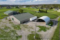 | SOLD, SOLD, SOLD Custom 5,600 SF barndominium complete with 3 BR-2 bath living quarters, and garage with fitness center/office, a 10,000 SF pole barn with 8 stalls, 50' x 40' galvanized quonset hut equipment building and eight lush paddocks with run-in sheds surrounded by black board fencing on an open and level 13.41 acres. Located 15 minutes from River Ridge Business Center and I-265. Property offers an ideal setting for various pursuits. Minimum Opening Reserve Bid $569,000. The barndominium features 10' ceilings, luxury vinyl plank flooring, tongue, and groove walls and ceilings, granite countertops, covered patio with hottub and stone fireplace. See website for Auction Terms. |