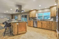 | SOLD for: $1,375,000 on Jan. 12, 2023 .. THANK YOU CARPROPERTY.COM FOR HELPING US FIND A BUYER! Once in a lifetime opportunity to purchase your dream home & dream garage on acreage, but close to town! Gorgeous custom ranch home on 4.67 private acres. Detached 13 car garage is professional shop with a 9 car garage section with 2 RV height doors w/ 15,000lb car/truck lift & secured separate 4 car tandem garage. The building is 4400 SF, w/ 3200 SF of garage space & 1200 SF living Space. Garage has heaters, ventilation, epoxy floors, workbenches, wired for air compressor system, hot/cold water, 14ft ceilings on RV height side & storage area. The living space is currently a Rec Room... w/ a full bath, furnace, plumbed for wet bar/ kitchenette & wall of fire-rated windows overlooking garage. The property is our own slice of Colorado w/ stunning views of mountains & red rock formations- 15 min south of downtown Colo Springs! Custom home w/dramatic Moss Rock wall that spans two levels. A gourmet kitchen w /Alder cabinets, granite countertops, island w/ gas cook top, Jenn Air SS appliances, custom LED lighting & cork floors. Eat-in dining area w/ fireplace & walk-out to covered patio, the primary bedroom w/ en-suite bath, walk-in closet, door to composite deck (rated & pre-wired for hot tub), 2nd & 3rd beds, full bath, office or formal dining room, mud/laundry room w/ cabinets, & 3/4 bath. LVP floors in entry, hallway & 3rd bed, w/ 6” pine base molding, solid core doors, 20” tile floors in baths. Spiral down the stairs to the lower level w/ family room w/ reclaimed barn wood accents, built-in cabinets, 2nd family room w/ fireplace, flagstone floor, barn wood accents, beds 4 & 5, full bath & workout area w/ walk out. Two furnaces, AC, stucco exterior, steel roof, 22 x 22 front patio stamped concrete walkways, backyard patio, dawn to dusk landscape lighting, concrete pad (24’x58’) for trailer/RV parking, electric gate, community water & 2 septic systems. | |