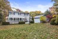 | If you're looking for a HUGE garage, your search ends here! Fantastic 30'x36' heated, insulated Morton bldg has 1349 s.f. which includes loft, 14' garage door & 16' ceilings. Well maintained Cape style home sited on 3 acres of wooded privacy with lovely english country gardens. Kitchen with breakfast bar and dining area open to living room with hardwood floors and propane, masonry fireplace. 1st floor bedroom next to updated full bath. Oak stairs to 2nd floor; front to back primary bedroom, 2 additional bedrooms & additional updated bath. Enjoy the surrounding nature from the heated sunroom or from the 36'x12' deck. Updates include electrical service, roof, insulation, well pump & newer boiler. OWNED solar panels for hot water. Whole house fan. Unfinished, walk out lower level has additional fireplace & FHW heat. So many possibilities with a workshop on your property; a rare find. Welcome home! |