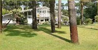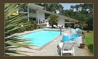 | This stunning house half wood half glass was designed by the famous french architect Patrick Fouquet and built during 1997-1998. Its 330 m2 on the ground are oriented full South West, in an exotic greenery case of 3 500 m2, lined by the fôret and in front of a sanctuary bird with a lake belonging to the Conservatoire du Littoral. This haven of peace is 100 metres of the Bassin d'Arcachon and the port of Piraillan, and 1,5 kilometres through the forest from the most beautiful beaches of the Ocean Atlantic. With 650m2 livable opened on the nature, it is one of the most pleasant houses to live in on the Peninsula of Cap Ferret. |