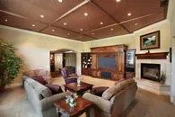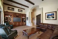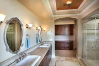 | What a garage! This visually unobstructive garage blends perfectly with the elegant Country French architecture, but was designed for the true car buff! Approx. 50' x 50', PLUS a memorabilia area with kitchenette - and even a private urinal for the ultimate ManCave! 220V, custom built-in surround sound, built-in cabinets, epoxy floors, 12' ceilings....even a washer/dryer set-up for your shop towels (separate from the home). Lift shown can be included with acceptable offer. Garage Sq. Ft. = 2,600 This captivating 'Country French' estate home is in the heart of the Central Coast Wine Region (Paso Robles). Located directly between Los Angeles and San Francisco on Hwy 101 and just 1/2 hour to the coast, Paso Robles is quickly becoming the next Napa Valley in international wine production. The house has 5,000sq.ft. of richly appointed living space, and approx. 8,000sq.ft. under roof, the home includes 5 bedrooms (with two master suites), 4.5 baths, a impressive home theatre room with adjacent lounge/bar, and an unbelievable 2,500+SF 10 car garage to accommodate the most impressive of automotive collections. |
