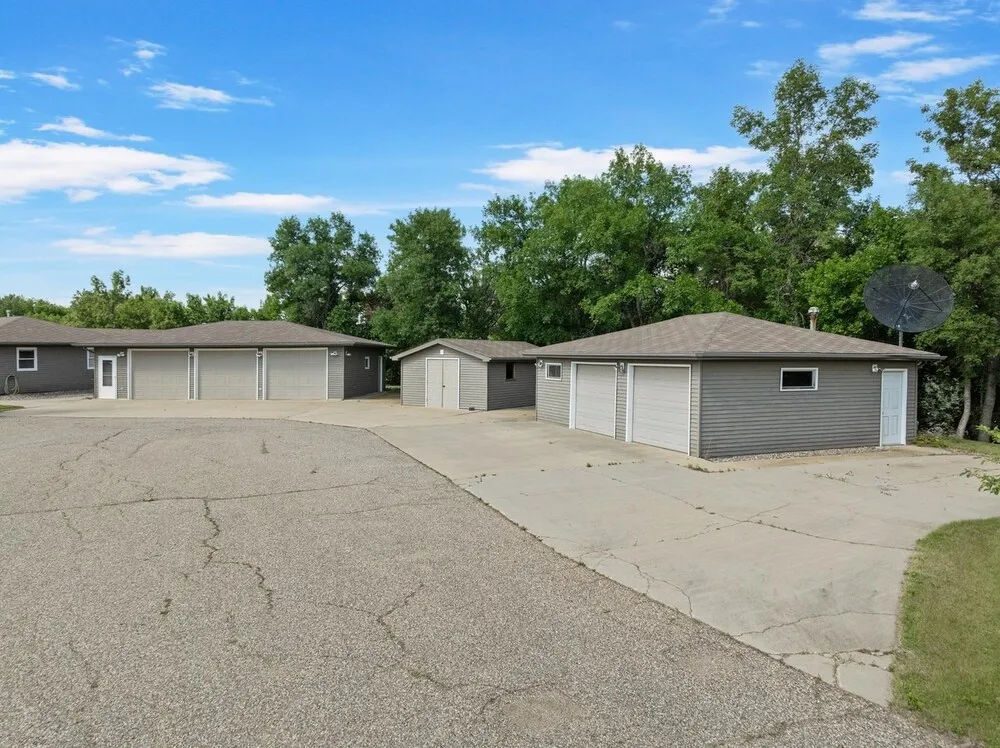 | Sale Pending - Contingent Offer You'll find a triple detached garage (30’x40’) with in-floor hot water heat and a wet bar, a heated double detached garage (30’x24’), and a 20’x14’ shed. There’s an RV hookup next to the garages on a designated parking pad, plus an additional lower-level parking pad behind and below the home—perfect for storing an RV, boat, or extra vehicles. |