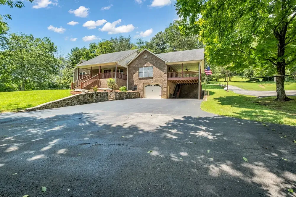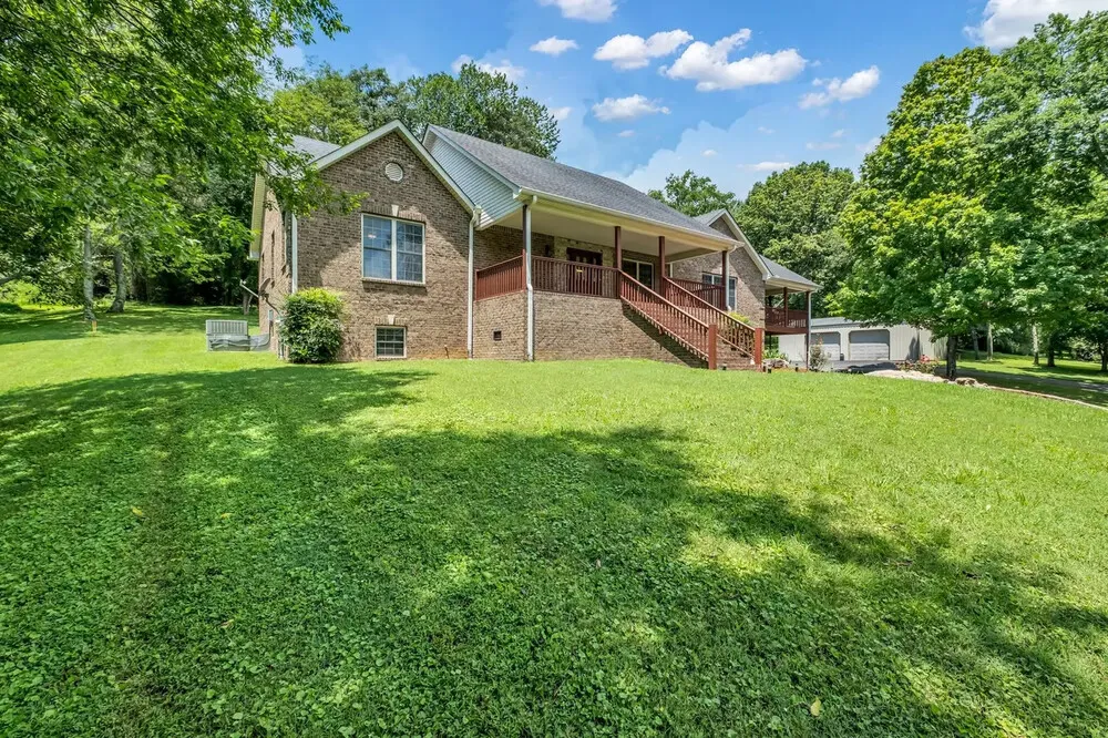 NEW PRICE! Spacious all brick home in private country setting awaits a new family on 14 acres! Property includes 2 large storage buildings that have 5 car bays/garage, one storage shed and an RV covered space with electric. The acreage is split about half open land and half treed. Rocking chair covered front porch! Home is a one level ranch with a large finished basement & a full bath, fireplace and 2 car tandem garage. Large kitchen with center island, plenty of counterspace and tiled backsplash - Kitchen opens to a 30x15 covered porch - great for entertaining!. Living RM features a corner fireplace and open dining area. 3 bedrooms on the main level. Primary bath with a large tiled walk in shower. Oversized laundry room. Huge finished basement has tons of potential and would make a great rec room, in-law suite or teen-suite. Super location, just minutes to I24 access, 20 mins to downtown Nashville, less than 25 mins to Nashville Airport. Off the beaten path with little traffic or nearby neighbors give this property a secluded feel! Must see to truly appreciate the tranquility and space this lovely home and land has to offer. One owner home. Easy to show and quick occupancy. All information deemed correct, buyer and agent to verify.