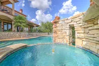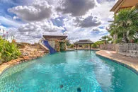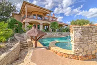 | SOLD on Sept. 15, 2017 An entertainers paradise overlooking lake, sprawling on over 7 acres of manicured live oaks. This 3-3.5-5 Mediterranean boasts 22' foot ceilings, gourmet kitchen, open space living and views from every angle. Master has fireplace, and his and hers custom walk in closets. Game room with kitchen, wet bar and bath. Salt water pool with slide, attached spa and pool bar all overlooking the lake. Property has separate 3-2 home and guest cottage. |