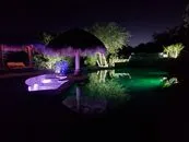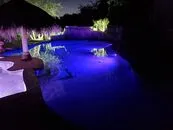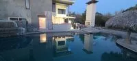 | HUGE PRICE REDUCTION TO 1,600,000. INCREDIBLE LIVE/WORK/PLAY MODERN POOL HOME WITH 7500 SF AUTO SHOP ON 7.5 ACRES. Ultra Modern Home, Remodel completed in September, 2022. Every surface replaced (Floors, Countertops, Sinks, Showers, Stairs, Furniture) with Modern Concrete. Entire house is filled with Custom Back lit Soffits, Art Wall Lighting, LED lit Concrete Stair Treads, LED lit Wall Aluminum Reglet Moldings, (eliminating baseboards) Occupancy Sensor Lighting, 2 Custom Backlit Mirrors, Modern Shower Doors, Fixtures, Custom LED lit Concrete Sinks, LED lit Showers and more. The Kitchen is definitely a focal point with custom Concrete Countertops, Concrete Drainboard Sink, Center Island and LED Neon lit Concrete Back Splashes. Island has cool center pocket equipped with 110 Outlets and USB ports for charging and storage. All cabinets are finished in elegant semi-gloss black finish. The Fridge, Cooktop, Microwave and Dishwasher are all Black Stainless Steel and easy to clean. Another great gathering area is the Entertainers Back Yard with massive 48,000 Gallon In Ground Salt Water Pool. Cool off and Swim up to your Palapa covered swim up bar, lounge on the Tanning Ledge, explore the Under Water Cave with and Rock Waterfalls, hang out at Beach Entry, Dive into 12 foot deep end or chill on the ledges around the rock waterfalls. Extensive RGB NEON LED Lighting around perimeter, 4 Color Changing LED Pool Lights in Pool and in Huge, 12 person Hot Tub. Your guests will be envious of the Extensive LED Landscaping Lights, Concrete Fire & Water Tables, Barbeque Bar/Counter, Island with Custom Imbedded LED Accent Lighting in Patio and Deck floors, at countertop edges, in Countertops and Water/Fire Table and throughout the backyard. There are Two Palapas to escape the sun, a massive Outdoor Fireplace, Huge Concrete Deck area with High End Speakers for amazing gatherings. The equipment is Pentair and consists of 2 Pumps, Salt Water Generator, Sand Filter, Heater and Spa Air Pump, all controlled remotely with App or inside controls. Solar heating panels can be easily added as 2" piping and valves are plumbed to the house. After your swim, workout in your 280 SF Home Gym with Therapy Spa, 2 person Steam Shower, Bathroom, Complete Commercial Gym System, TV, Refrigerator, Speakers, Soffits with Neon LED Lighting, Ample area to stretch, Yoga, late night dance parties and so on. Infrastructure on this property is impressive with paved roads, underground utilities, several culverts, 5 200 Amp and 5 100 Amp panels which provide power to House, Outbuilding adjacent house, House basement/Pool/Gym/Garden/Barn, Shop, Studio and Loft. Entire property equipped with 1 Gig Umbiquiti Network WiFi with no dead spots. Both House and Shop have designated Lorex security systems recording HD video from 32 cameras to local hard drives and to Cloud. Entire property is fenced, cross fenced and Electric Dog Fencing with two separate gates to access house and shop. There's a Water Well with 10,000 Gallons storage, 40 Solar Panels which are Grid Tied and monitored on App. On many occasions, solar has produced enough electricity to spin meter backwards which means free electricity and .05 cents per Kwh credit to the bill. There are 3 Sewer systems, 2 (New in 2022, 2019) with 1250 Gallon Concrete Septic tanks and 200 foot drain fields. The other is plastic, 500 gallon with tanks opposed to drain fields. Currently, 300 gallon propane tank heats the house, clothes dryer and cooktop. These can be easily converted back to natural gas as it's recently been installed in Spicewood. There's a fenced 40' x 20' Vegetable garden that produces buckets of Tomatoes, Peppers, Asparagus, Watermelon, Carrots, Lettuce, Black Berries, Cucumbers and more. Next to garden is 20' x 24' Greenhouse which needs finished. It's framed, has utilities, Sliding glass doors and just needs polycarbonate panels installed. There's 20' x 24' Barn that was used to raise Goats, Donkies, Chickens, Turkeys, Ducks and other critters. There are 3 separate coops, all with utilities and pretty much turnkey. There's also a 1/2 Pond which fills quickly after a decent rain. This flows over a large rock waterfall that supplies a smaller pond. Water runs under the driveway through culvert and feeds a lower, smaller pond and river that flows 60 feet in front of the garden and barn. Both are lined with rubber pond liners and have pumps to airate and feed them. Work from home in your 7,800 SF two story Automotive Work Shop built in 2017. Comes turnkey with Auto Lift, 5 HP Air Compressor, zero moisture Air Line system, LED Lighting, 300 SF Office with Customer Bathroom, Employee bathroom, massive 12' x 12' x 28' Automotive/Truck Drive Through Paint Booth. Booth is equipped with New LED Lighting, 24" 5 HP Tube Axial Explosion Proof 220 Volt Exhaust Fan, 3 Tier Dessicant Air Dryer, Hanke 25 CFM Clean Air Coolers, Filters, etc. Tons of Parts storage in Upstairs loft. Guests can stay in Mother-in-law or Air B&B, 600 SF fully furnished One Bedroom Apartment with Full Bathroom, Living Room, Kitchen, Washer & Dryer, HVAC system, Tankless Water Heater, Concrete Countertops and Flooring, Concrete shower, LED backlit Soffits in all rooms, WiFi, Connected for Cable, Fridge, Microwave, 60" Flat-screen TV. Take over Extremely Profitable, repeat customer, Turn Key Used Auto Sales, Service/Reconditioning/Detail, Auto Parts Recycling, Salvage Rebuild business. Includes ALL Inventory ($100,000 in Used Body Parts, Computers, Airbags, Interior Trim, Seats, Wheels, Catalytic Converters, Fixtures, Tools, Shop Equipment, Shop Supplies, Computers, Printers, Dealer Management Software, Website, TX DMV log in/credentials to sell Retail/Wholesale/Salvage and print Temp paper tags, more. This business is being run part time (30-40%) as I split my time completing the remodel on the house and running decorative concrete business. Auto sales business was generating $550-600,000 per year gross sales (2013-2019