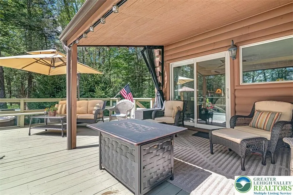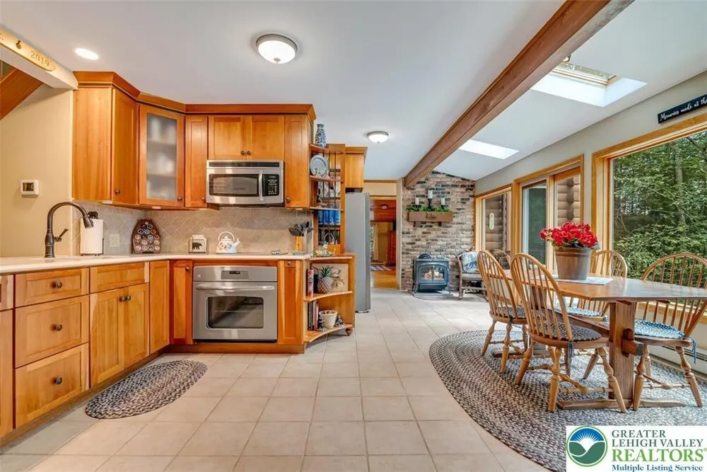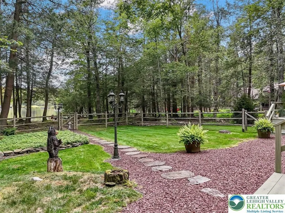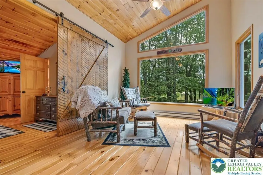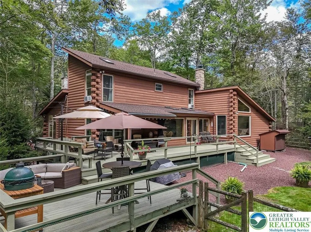 | LAKEFRONT! LAKEFRONT! LAKEFRONT! Welcome to a truly special lakefront retreat where luxury meets tranquility. This beautifully appointed 4-bedroom, 3 full bath home offers mountain living in a warm, inviting setting—perfect as an upscale getaway or a fabulous Short Term Rental. Step inside to a sun-drenched interior with soaring ceilings, rich hardwood, Luxury Vinyl floors, & lake views from nearly every room. The kitchen is always the heart of the home & this one doesn't disappoint, featuring stainless appliances, quartz countertop & custom cherry cabinets. This sociable area seamlessly flows into the dining area with wood stove, living room with gas fireplace & the "Lake Room", a cozy family/game room. The 1st floor features 2 bedrooms with 2 full baths & laundry. The 2nd floor features 2 bedrooms and full bath providing comfort & convenience for family & guests alike. Outdoors, unwind on the expansive deck, host dinner under the stars, or launch a kayak from your private shoreline. Enjoy the amenities of Short Term Rental friendly Camelot Forest Conservation, including 2 lakes, private beach, tennis courts & nature trails. Every detail of this home has been thoughtfully designed to offer comfort & effortless lakefront living. Minutes to Pocono Raceway, Lake Harmony for golf, dining and entertainment, and when winter arrives, you're just minutes away from Jack Frost/Big Boulder Ski Resort, making this a true four season retreat in the heart of the Pocono Mountains. |