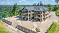 | Landmark luxury lake view estate on 63 park-like acres. Extraordinary panoramic views of Tennessee's pristine Dale Hollow Lake. Watch inspirational sunsets from one of the many balconies and sun rooms. Immaculate marble & hand-crafted woodwork throughout. 3 full-sized gourmet kitchens & additional kitchenettes. Dramatic 2 story resort-style breezeway connects wings of this magnificent home. Commercial grade home theater. Guest quarters with open concept office/lounge space, 3 bedrooms & third floor lookout cupola with 360 degree views. Separate commercial style shop/garage. Nearly 50,000 sq ft of finished space total! There is nothing else like this on the market in Tennessee. A premier heirloom estate. Could also serve as corporate retreat, luxury resort or event venue. |