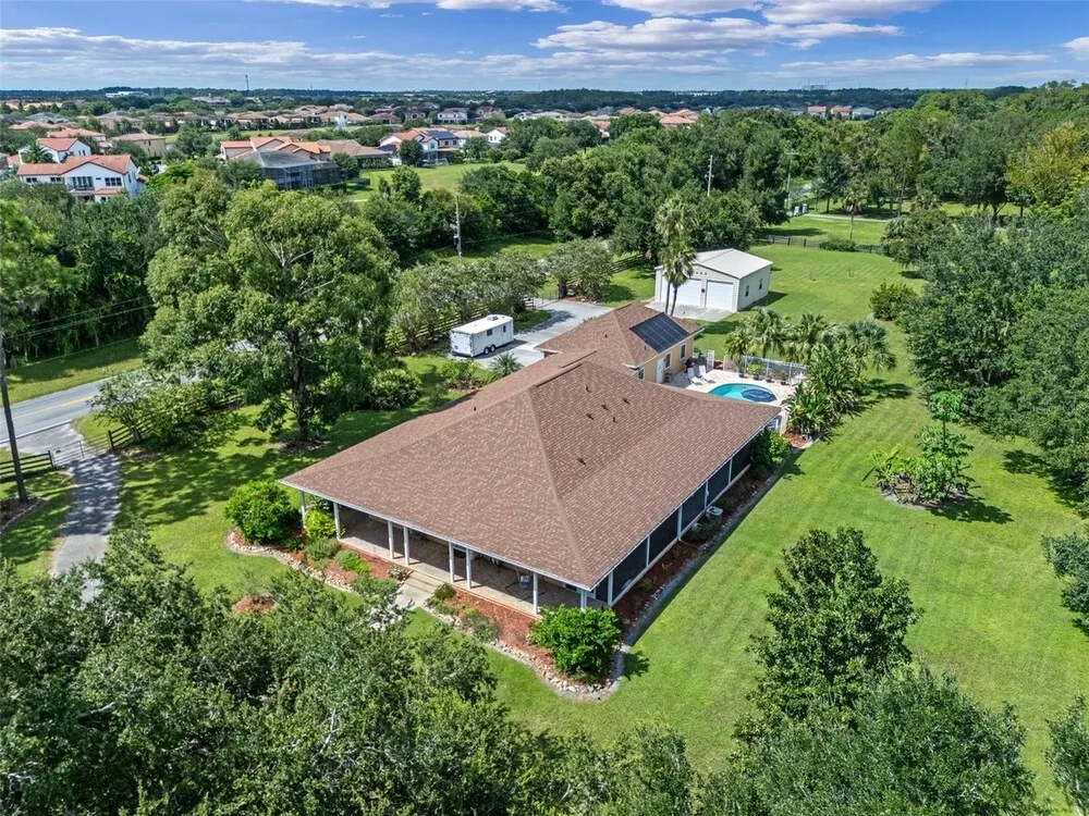 | One or more photo(s) has been virtually staged. BRING OFFERS! You’re PRIVATE estate awaits! Welcome to 11101 Tindall Road, a private Lake Nona retreat on 2.5 acres of fully fenced land, offering the perfect blend of peaceful country-style living and city convenience just minutes from Lake Nona Medical City, shopping, dining, and top-rated schools. This 3,128-square-foot home offers four bedrooms and three-and-a-half baths, including a private IN-LAW SUITE ideal for guests, extended family, or work-from-home flexibility. The open floor plan creates a bright, inviting flow through spacious living areas with elegant architectural details, a cozy fireplace, and an updated chef’s kitchen with new cabinets, granite countertops, and a large breakfast bar overlooking the family room. This home features a beautiful, warm sunset palette inside and out. No cookie-cutter white/gray! Every room opens with double French doors to the wraparound screened porch, creating a true indoor–outdoor connection. As cooler weather arrives, open the doors throughout the home and enjoy the gentle cross-breezes, a feature rarely found in newer construction. Step outside to your private backyard oasis with a sparkling solar-heated pool, expansive patio, and lush tropical landscaping. The screened porches on all four sides capture soft east–west breezes and provide relaxing spots to enjoy quiet mornings, sunsets, and starlit evenings. Additional highlights include a brand-new roof, solar panels, a 2017 well, and 2022 septic service for peace of mind. A two-car attached garage pairs with a 1,024-square-foot detached four-car garage/workshop plus a 240-square-foot shed, perfect for storage, projects, or all your recreational toys. With no HOA, no water or sewer bills, and a setting that delivers privacy, space, and freedom, this property captures the best of both worlds: tranquil, private living with every modern convenience close by. Enjoy dark-sky stargazing, abundant birdlife, and front-row seats to rocket launches, all from your own backyard. Bring All Offers, your Lake Nona retreat awaits! |