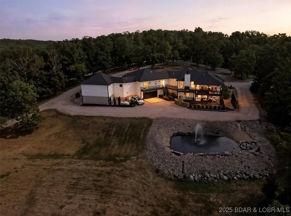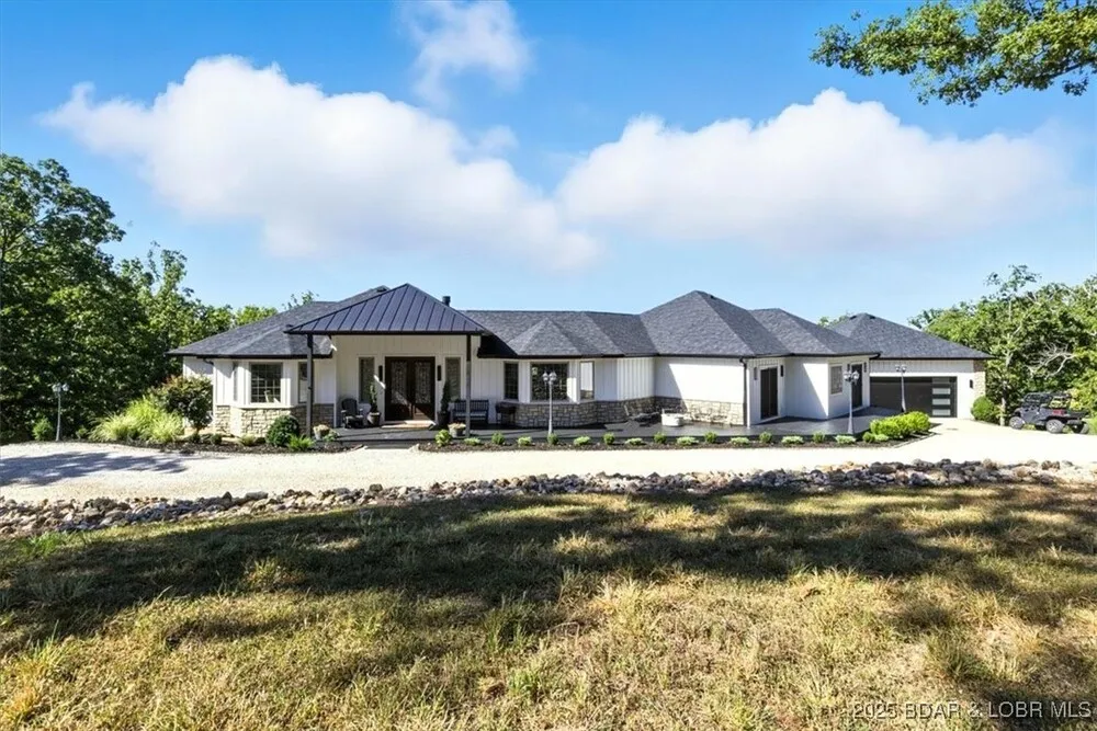 | Private 16-acre estate with lake access & boat slips! This ~7,000 sq. ft. home under roof offers 6BR/5BA, including one non-conforming bedroom, wooded trails, and the ability to bring horses, blending country living with Lake of the Ozarks lifestyle. From the back, enjoy magnificent views of rolling landscape. Included is a 14x48 boat slip and dedicated dock space for two drive-on PWC lifts. An additional slip is available, offering even more flexibility for enjoying the lake! The home provides spacious living areas, natural light, a 5-car garage, ample parking, and a whole-home auto generator. Upgrades include LP Diamond Kote exterior, roof, gutters, and soffit (2023-24), plus a high-efficiency HVAC (5 yrs old) and water heater (2yrs old). Outdoors: scenic trails, two fenced pastures, and a multi-purpose barn with a run-in shelter, designed from a customized shipping container for durability and efficiency, ideal for horses, recreation, or enjoying the Ozarks. The land attracts abundant wildlife, perfect for turkey and deer hunters. Despite its seclusion, the property is centrally located near shopping, dining, and entertainment, offering privacy without sacrificing convenience. | |