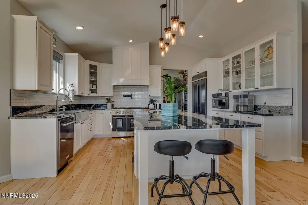 | Discover the allure of Sierra Skies Ranch! This stunning 12.36-acre property is a haven for outdoor enthusiasts, offering ample space for horses, dogs, ATVs, car enthusiasts, and more. Revel in the breathtaking views of the Sierra Nevada mountains from Mount Rose to Silver Peak, with the pristine beaches of Lake Tahoe just a 30-minute drive away. Topaz Lake's fishing and boating are equally accessible within half an hour, and the Reno-Tahoe International Airport is a mere 45 minutes from your doorstep, connecting you effortlessly to your next adventure. Located on the eastern side of the Carson Valley, Sierra Skies Ranch enjoys an additional hour of sunshine and less snow than those living in the west valley. The ranch house, over 3600 square feet, is ideal for entertaining with its impressive chef's kitchen. It boasts three bedrooms plus an office (which can be converted to a fourth bedroom), and three full bathrooms, ensuring ample space for everyone. The large bay windows offer stunning views of the Sierra mountains. A four-car garage provides extensive parking. Additionally, a sizable 25' by 52' shop, equipped with two 14-foot doors and 240V service, is perfect for storing your recreational vehicles, tools, and toys. An attached one-bedroom apartment comes complete with a full kitchen, bathroom, and laundry facilities. The property is subdividable, fully fenced and cross-fenced, and features two gates for convenient pull-through access. It includes a 3-stall barn with a tack room, bathroom, and hay storage. Other amenities include a whole-house Generac backup generator, a comprehensive water filtration system with reverse osmosis in the kitchen, a central vacuum system, a laundry room adjacent to the primary bathroom, dual-zoned HVAC and water heaters, a spacious dog run accessible from the yard and primary bedroom, two gas stubs for potential gas fireplace installations, UV filtering blinds, and a large, therapeutic hot tub with a wind-safe, EZ-lift locking cover. Equestrians and outdoorsmen will appreciate the direct access to adjacent BLM land with endless miles of trails where you can view and photograph the valley's famous wild horses and Pronghorn antelope in the Pine Nut Range. Close to shopping, medical facilities, and dining options, Sierra Skies Ranch is the epitome of country elegance combined with contemporary conveniences, offering an idyllic haven for nature lovers and those desiring a peaceful lifestyle. |