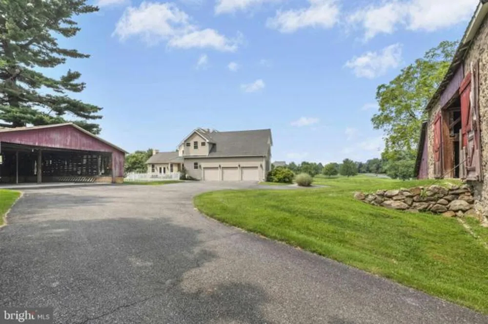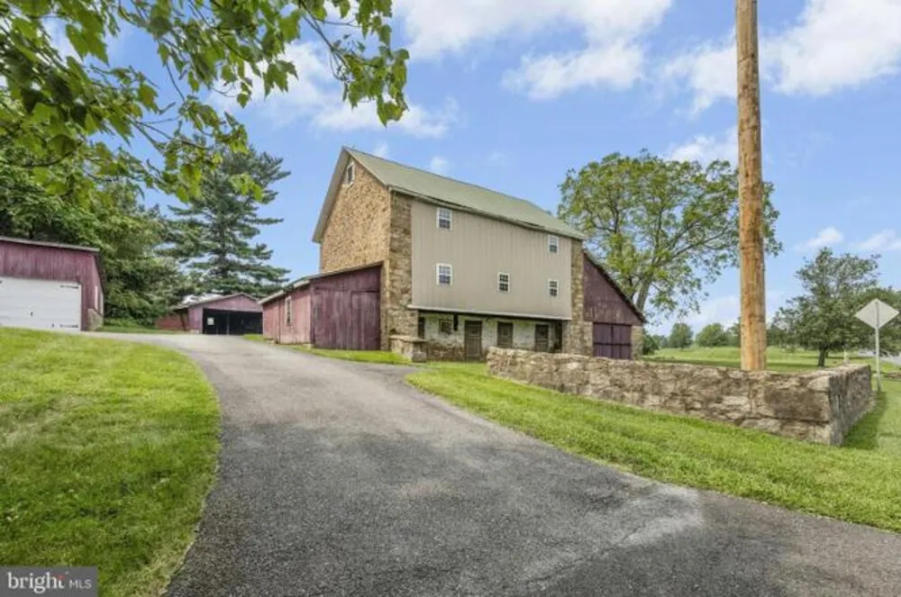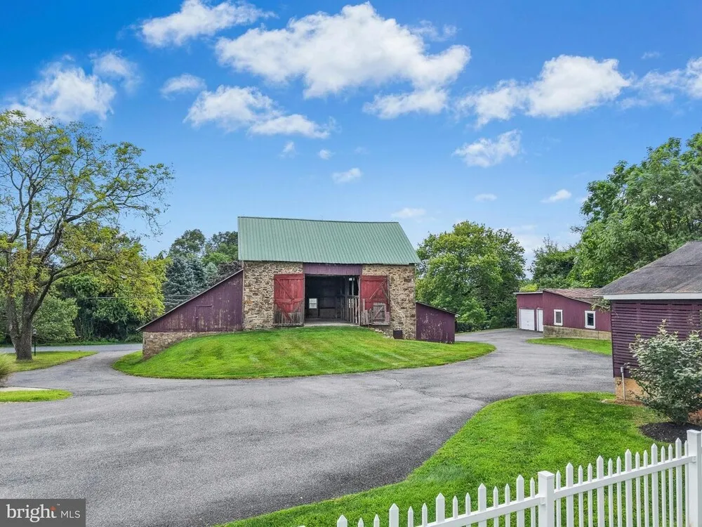 SUNRISE KNOLL An exceptional blend of modern day amenities and a bygone era, Sunrise Knoll is a reimagined farmhouse nestled on 6.27 acres in a convenient Saucon Valley location. A beautifully cared for custom built home with traditional farm outbuildings, including an Historic Pennsylvania bank barn, comprise the serene setting. Gracious and open, the living areas are filled with natural light, high ceilings, front and back stairs, and picturesque views of the quiet surroundings. At the heart of the home is a stunning gourmet kitchen with cherry cabinetry, two islands, stainless appliances and breakfast area. The vaulted great room boasts a soaring stone fireplace and plentiful windows overlooking the picturesque land. An expansive dining room and living room shine with gleaming wood floors and a deep-silled window, perfect for formal and casual get-togethers. Luxuriously outfitted with dual walk in closets, a jetted tub, and resort quality shower, the vaulted primary suite is a haven at day’s end. Three additional bedrooms. .. . one a bedroom suite. .. . a hall bath, and a second laundry room complete the second floor. Perfect for teens and guests, a third level bedroom suite has a vaulted ceiling, full bath, and a bird’s eye view of majestic sunrises. Hobbyists and gardeners will appreciate the expansive grounds with an original corn crib and 5-bay garage. The distinctly rural feel is refreshing and peaceful, yet everyday essentials are close at hand. The perfect place to relax, or bring your horse, or simply take fabulous photos of sunsets or Holiday magic!