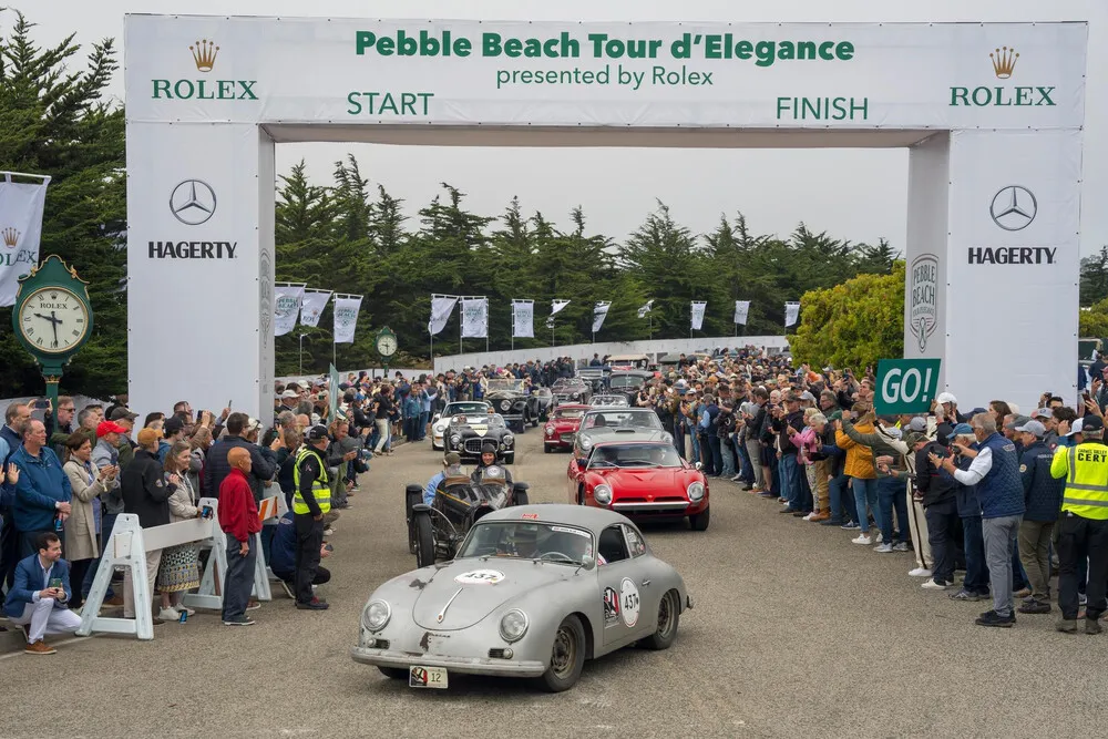 | Join us for the Pebble Beach Tour d’Elegance presented by Rolex on Thursday, August 14, 2025 An exhibition of elegance in motion, the annual Pebble Beach Tour d’Elegance presented by Rolex features more than 150 Concours entrants seeking to prove they are roadworthy and gain an advantage in the Concours as they trace a scenic route on Highway 1. The Tour begins in Pebble Beach, traces 17-Mile Drive, Highway One to Big Sur, and then returns to Pebble Beach to cross the Finish line. A car that successfully completes the Tour gets the nod if it later ties in class competition at the Concours. This is a great opportunity to get a first glimpse of the beautiful cars that will grace the show field on Concours Sunday as the public is invited to view the Tour, without fee, at several points. For all you early birds, there’s nothing like hearing and feeling the engines revving at the Start. Be sure to get there bright and early though: the cars begin to line up before 7:00 am and leave promptly at 9:30 am! |