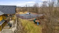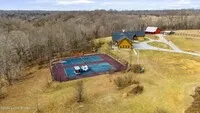 | Sold! The property features an incredible custom designed, energy efficient ($417/month avg utility bill), home with an indoor gun range, 2 tennis courts, 6 car garage, custom designed stone fireplace (stones sourced from the property) with a built in rock climbing wall! As you enter thru the double mahogany front doors you are greeted with an incredible curved wood staircase to the second floor. The foyer views the stone fireplace that is open on three sides and spans from the basement up. The Kitchen is gorgeous with a massive island, gas range, and HUGE dining area! The first floor owners suite has a stone fireplace, direct access to the deck and hot tub, and a beautiful bath with a large walk in shower. The owners closet has a washer and dryer. The basement is ready to entertain with indoor gun range, family room with the open stone fireplace, a true built-in safe room with a locking safe door. Unique to the property is the full apartment above the garage, while this could be continued living area, it is a full functioning apartment with 3 bedrooms, a full kitchen, and laundry. Perfect for multi generational families! There is also a place predesignated for an elevator shaft for future installation. The 6 car garage is a car enthusiast dream with a great work shop, epoxy floors, and a half bath. The home has incredibly low utility bills due to the energy saving construction and geo thermal heat system. The land is a perfect mix of open ground in the front for all your farming desires with a barn and chicken coop already in place! There is also the 2 tennis courts! The rear of the property is wooded and has incredible trails for exploring your 59 +/- acre oasis and hiking down to the creek and the outdoor gun range! You truly do not find this type of property often! This property could not be replicated for anything like the asking price! | |