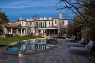 | SOLD for $6,000,000 on Jan 7, 2016 Privately gated, exquisite French Manor Estate on Arcadia's most desired street. All masonry construction built by Nance and designed by Mark Candelaria. Every detail and finish completed with ultimate quality and execution. Timeless and elegant. Beautiful Millwork, Plastered walls, authentic French stone and wood flooring, custom French doors and 10 fireplaces. Gourmet kitchen includes indoor grill, Miele steamer, french stove and built in espresso maker. All tile roof imported from France. Wonderful Natural light. Back yard with custom pool, pool house area and lush, mature landscaping. Garages for 10 cars. Full guest house. Detailed fact sheet/floorplan on document tab.Elevator, 4 bedrooms main home, 1 bedroom guest house.Under roof 12,419 square feet .Great floorplan for everyone! | |