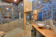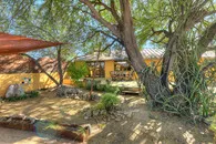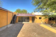 | Rare offering in Historic Jefferson Park. Adorable 1938 3 bed 2 bath brick bungalow nicely updated includes a 2 car drive-thru garage. Stunning 1 bed 1 bath guest house built in 2006 with extensive custom cabinetry and fabulous cook's kitchen. Adjoining this space is a heated and cooled 1446 sq ft multipurpose space with a drive thru garage plus additional garage door allows parking for 8 cars. Main house and guest building are separated by a mesquite- shaded courtyard with connecting motor court, making it possible to enter garage from the front of the property on Hampton and drive all the way through the property to exit from rear garage to alleyway. 2 car lift piers are in place & will support 15-20,000 lbs. New lift would need to be installed. Spa-ready rooftop deck offers panoramic mountain views and the city lights skyline. Privacy walls create security for the compound and a peaceful city sanctuary. Only 4 blocks north of U of A campus Banner Hosp. Just a few blocks more to all of campus, city street car and downtown beyond. | |