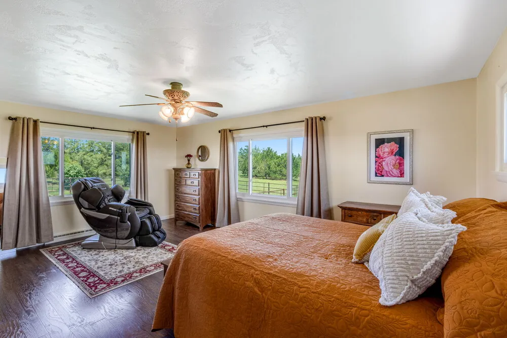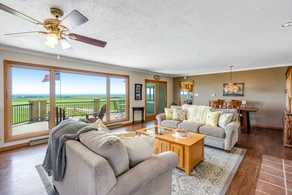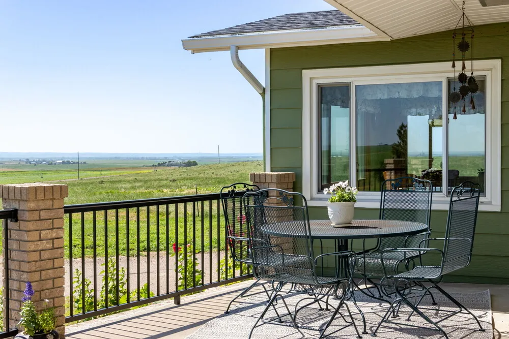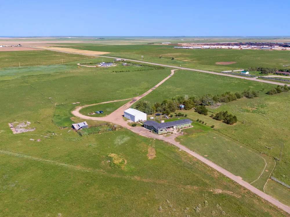 | Experience peaceful country living on this stunning 80-acre property perched on a bluff and overlooking Sterling, CO. Enjoy breathtaking sunrise and sunset views from the spacious front concrete porch or unwind in the hot tub on the large back deck. This charming 2,384 sq ft ranch-style farmhouse features 3 spacious bedrooms, 2 bathrooms (1 full, 1 three-quarter), and timeless character throughout. Built in 1961, the home offers a mix of comfort and charm with a family room, living room, brick fireplace, wood-burning stove, breakfast nook, and large picture windows that flood the space with natural light. Additional highlights include a newer Class 5 shingle roof, newer exterior paint, a new front door, and all stainless-steel appliances and the washer and dryer. The lush backyard and asphalt driveway enhance the property's appeal, while the 1,516 sq ft detached drive-thru shop offers incredible space for hobbies, equipment, or storage. The 500-gallon propane tank is owned, and the property includes a 14-month Blue Ribbon Home Warranty for peace of mind. Whether you're looking for a private homestead, hobby farm, or quiet retreat, this one-of-a-kind property combines rural serenity with everyday comfort. |
