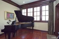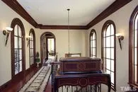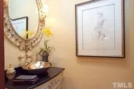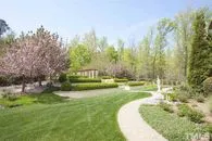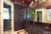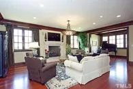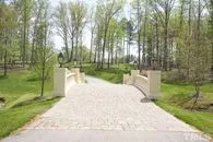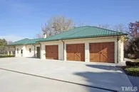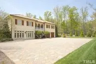 Nestled on 94.25 acres overlooking lake with nearly mile long drive winding through rolling hills & woods. Gas light bridge. 12 car detached garage with 12 separate wood doors, concrete block construction, open span, 12 openers. 4 car climate controlled garage with 4 doors, concrete block construction, open span. Car wash with changeable heads. Carriage house is 1 bedroom with study, bonus room, large family room, full kitchen w/ wine cooler, elevator, 2 car climate controlled garage. Solid mahogany doors & trim, Brazilian cherry floors, custom tile roof, high end appointments. Tiered gardens, fully irrigated. Majestic gated entry. Extraordinary lake views, totally private & serene. 8 miles to downtown Raleigh, NC. |