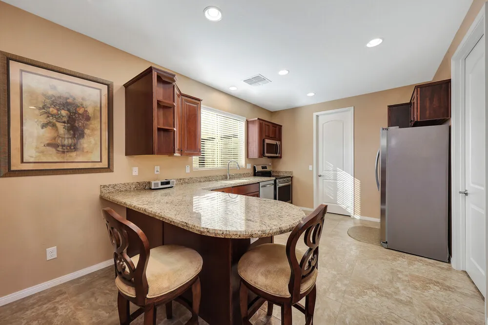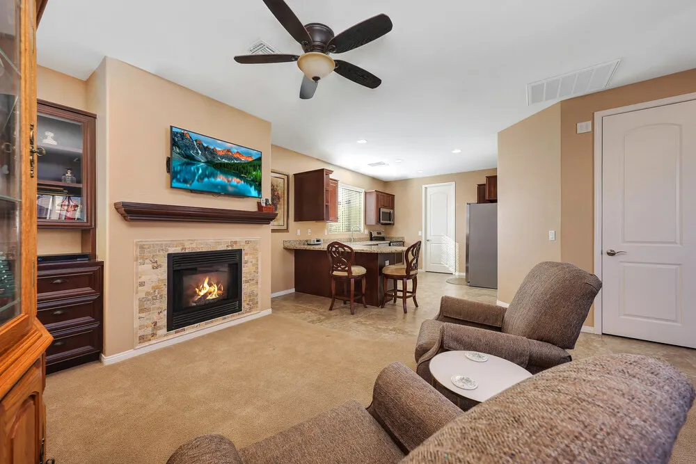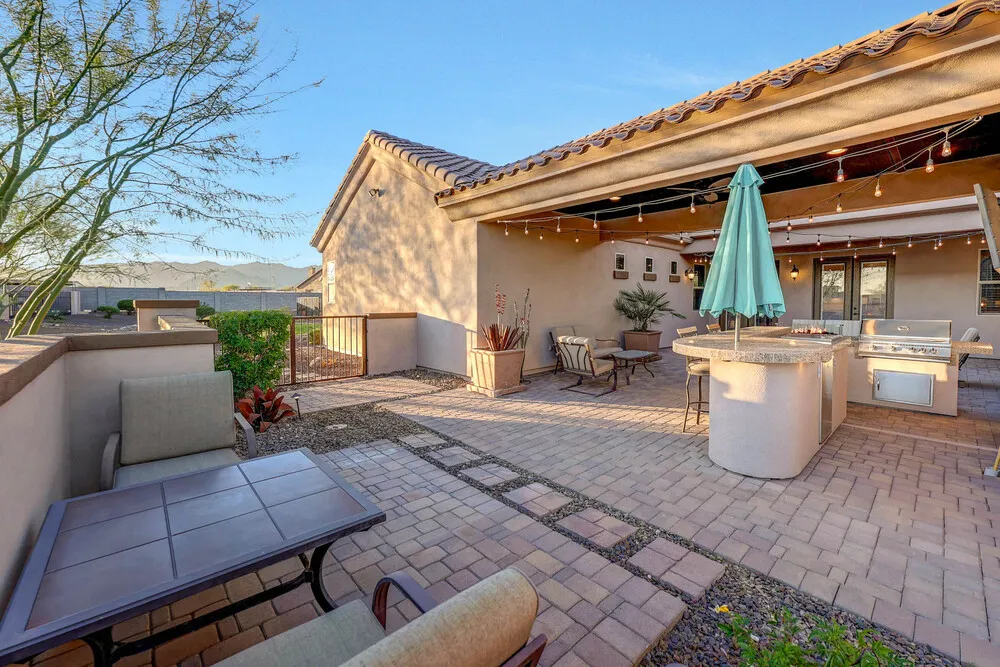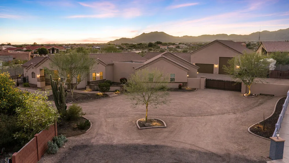 | Welcome to this stunning custom estate situated on a full acre with horse privileges and no HOA. From the moment you arrive, the motorized gated entry and fully landscaped exterior set the tone for the exceptional living experience this property offers. The main home features over 3,000 sq ft of thoughtfully designed space with a tasteful color palette, upgraded finishes throughout, and an abundance of natural light. The layout includes 3 bedrooms, a den with custom built-ins, a bonus room near the secondary bedrooms, a formal dining room, and a butler's pantry. you'll love the oversized garage that can easily fit 4 cars and the tandem space is perfect for a long bed truck or boat. The chef's kitchen is a true standout: complete with wall ovens, a pot filler, a cooktop stove, granite counters, custom cabinetry, and a huge island perfect for entertaining. The spacious great room offers a fireplace and additional built-ins, creating a warm and inviting space for gatherings. The primary suite is oversized and luxurious, featuring a jetted tub, separate shower, dual sinks, and a generous walk-in closet. The secondary bedrooms share a convenient Jack-and-Jill bathroom. Storage is abundant throughout the home. Step outside to find two covered patios, including an outdoor kitchen area complete with a TV, Outdoor BBQ, seating area, and beautiful mountain views: ideal for relaxing or hosting friends and family. The detached guest house (over 1,200 sq ft) offers upgraded finishes that make it feel like a true second home, not a typical casita. Highlights include a custom front door, full kitchen, laundry room, fireplace, back patio, a guest bath, and an impressively large closet and pantry. Perfect for multigenerational living or long-term guests. Car enthusiasts and hobbyists will love the massive 42x48 ft RV garage/shop, offering space for five additional vehicles, plus its own bathroom and a 400 sq ft loft. In addition there are 50 amp interior and exterior RV outlets, plumbed for an air compressor, spray foam insulation on the roof, 2 mini split ac units and has 16+ ft vaulted ceiling. Additional RV parking with a clean out is available as well. This property is the ultimate compound-style retreat, blending privacy, functionality, and luxury living all on an acre with no HOA. Homes like this rarely come to market. This home should be at the top of your "must see" list. |