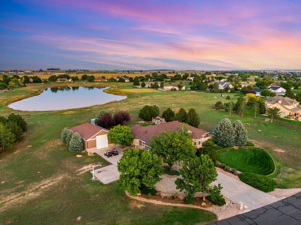 Pre-Inspected with 1 Year Gold Plan Blue Ribbon Home Warranty. This sprawling ranch sits on a 2.53-acre lot and features nearly 6,000 total square feet with 5,829 finished. The property includes an oversized 628 sq. ft. attached garage plus a 1,560 sq. ft. detached RV/Boat/Toy garage/shop. Incredible finishes inside and out. The main level offers a spacious foyer, formal dining, formal living, laundry room, great room with gas fireplace, three guest bedrooms (one easily used as an executive office), and a primary suite with retreat, walk-in closet, and five-piece bath. The kitchen boasts cityscape cabinets, granite slab countertops, a large center island, pantry, and stainless-steel appliances. The professionally finished basement includes three recreation spaces, a family room with a second gas fireplace, a flex room, and two additional bedrooms. Two high-efficiency furnaces, two water heaters, two AC units, and many more upgrades throughout, including hardwood floors, vaulted ceilings, iron railing, tile, six-panel doors, and a premium lighting package. The exterior features mature landscaping, a front courtyard, and a large covered backyard patio with beautiful lake views, sprinkler/drip system, room for gardens, outdoor bar and water feature. The west-facing front provides plenty of natural sunlight and snow melt for the driveway, plus stunning nightly sunsets, while the east-facing back offers cool summer shade, lake views, and breathtaking sunrises. | |