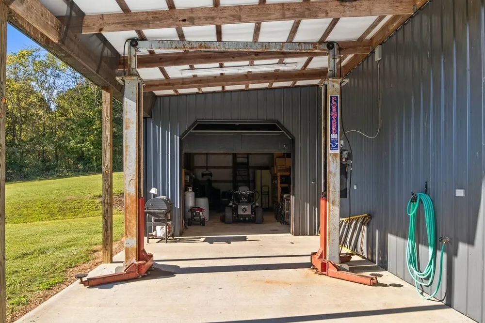 Custom built barndominium of your dreams!! This home sits on 5 perfectly laid acres!! Over 1,350' of road frontage! Exterior dimensions measuring 136'x50', this give you 45'x50' living area, 75'x50' garage, & a 16'x50 carport/attached garage with a 2 post lift. The living area is an open floor plan with 10' ceilings! LVP & carpet floor throughout. The kitchen features custom cabinets & counter tops, all stainless steel appliances, 6'x3' island, large 7'x10' pantry, & a 4 stool eat at bar!! Family room is very spacious (16'x21') & features a rock fireplace with gas logs!! Large primary bedroom with 2 walk in closets, 15'x10' & 11'x5'!! Primary bathroom consist of a double vanity, custom walk in tile shower with dual shower heads, & a big soaking tub!! All of the bedrooms in this home are sizable with lots of closet space!! 10'x6' laundry room & a 5'x5' mudroom!! Over 2,000 SqFt of storage above the living area!! The 3,750 SqFt garage offers gas heat, 1/2 bath, stainless sink, insulated garage doors (2 have power openers), & so much more! This area is great for entertaining family & friends, working on you projects, maintenance on vehicle & equipment, & so much more! The 2 post lift on the covered carport is rated for 9,000 lbs, and the attached garage is great for storage of your not used everyday belongings.. The 15'x36' out building is has water & electricity!! This property is one of kind!! Schedule your showing, today!!