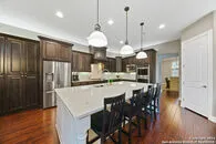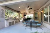 | SOLD on Sep 19, 2022 after being listed at $1,350,000 You can have it all. Enjoy all the luxury of The Dominion in this custom-crafted and recently remodeled GEM situated in Andalucia - conveniently located near the Tejas Trail guard gate. Beautiful wood floors flow throughout the lower level past the executive study, dining and living spaces, kitchen and primary retreat. Recent updates include a fresh, on-trend, oversized kitchen island, cabinetry, pot filler and sink & faucet. The primary suite provides peaceful relaxation in the newly updated spa bath with new flooring, shower, quartz countertops, soaking tub, new fixtures/mirrors, etc. The large and functional CA closet boasts practical luxury with the laundry room connected. Follow the gleaming spiral staircase to the loft area - perfect for a second office or a quiet place to read. Guest suite plus two other secondary bedrooms with full bath can accommodate the fussiest guests. Flex room for seasonal storage or crafts. Movie night is complete in the spacious game/media room plumbed for a wet bar and with large storage closet at rear. Enjoy spectacular outdoor entertaining on the roomy covered patio with living area by the fireplace, dining space AND a large grill area with counter-top seating. Sparkling freeform pool & cool-crete decking, mature trees and NO neighbor behind round out this private paradise. Don't miss the 4-car garage! The fully-insulated tandem garage with extra circuit for AC could be renovated into another bedroom suite downstairs. Dominion Country Club close by offers membership for social and/or golf. Be sure to check out all the amenities. |