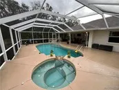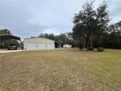 | Spacious detached 3 bay building w/100 amp service, water, insulated, air conditioned, attached car port and a separate RV port that happens to come with a beautiful, pool home on a lovely landscaped 1 acre | |