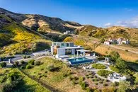 | Sold : $5,475,000 on 05/01/24 Kaley Cuoco (Big Bang Theory; The Flight Attendant) has listed this 6 car garage, four-bedroom, nine-acre gated property for sale. The ULTIMATE contemporary masterpiece Car Property estate! Set behind private gates within a small gated community of 11 properties is this one of a kind showplace! With a true premier location in Lobo Canyon, this custom property sits on nearly 9 acres with explosive panoramic views! RECENT renovations include an all new wine wall, wet bar and much more! The incredible open concept floor plan is graced with a MAIN LEVEL primary suite plus one additional en-suite bedroom. stepping up an awesome floating staircase you will find two additional bedrooms and a tremendous bonus/theater room. The resort quality grounds are second to none! There is a 45 foot infinity pool and spa, outdoor living room, barbecue center plus a new fireplace, added firepit and an abundance of professional landscape. Other amenities include multiple Fleetwood pocket doors, 10.5 inch wide plank French oak floors, 12 foot ceilings and one of the most beautiful center island kitchens you will see. This emotional home was designed and built using only the very finest finishes. The opportunities are endless! |