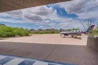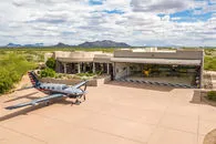 | SOLD for: $2,200,000 on 03/11/2022 Exclusive opportunity to not only own your own private 155 acre Arizona ranch nestled at the base of a mountain range BUT also a 2500' lighted PRIVATE concrete runway , 3348 sq. ft. beautiful main home. and a 611 Sq. Ft. private guest house. WAIT, don't forget the 3000 sq. ft. custom built hangar to house your aircraft to fly in an out of this incredible property in the desert. The land is bordered on 2 sides by national parks and the unobstructed mountain views & sunsets are breathtaking! For the aviation enthusiast you have your OWN private and exclusive 2500' concrete runway with pilot controlled runway lighting for dusk to dawn take offs and landings. In addition the custom hangar has 12' ceilings, a 50' bifold door, and full high pressured high volume compressed air. The stunning custom home has a open concept large family room open to the kitchen, formal dining room, and unending views of the mountains. The home features 3 bedrooms including the master bedroom with a LARGE sitting/bonus area, large office off the hangar, and 2 additional split bedrooms with jack and Jill bathroom. Gourmet kitchen features granite counters, rich beautiful cabinets, built in refrigerator, Kitchen Aid double ovens, drop in range, all stainless appliances including compactor, built in microwave, & dishwasher. The home has a new foam roof, newer HVAC units, and so many custom architecture features throughout. The backyard is adorned in pavers, built in BBQ, serene fountain, propane firepit for the cool winter nights in Arizona and so much natural desert landscaping. This home was not only built for comfort but entertaining as well. For your guests or NEXT GEN suite the home also has a 509 sq. ft. guest home/casita with a kitchenette, generous living room, private bathroom, and separate bedroom. You don't want to miss this opportunity as they don't come along often!!! Finally while this could all be yours you have the option to sell from the 155 acres as the land was subdivided and can be sold from the plat. | |