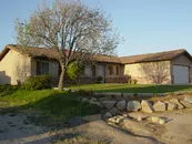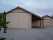 | SOLD for: $540,000 on 09/23/2016 ______________________________________ Single story 1728 sq. ft. house with six car garage attached. Two car garage at front of the house and four car in back. House is three bedroom two bath with a separate office and a laundry room. Kitchen and baths are all remodeled with granite and tile. RV barn on flat .51 acre lot. Barn is 20ft. wide x 30ft. deep. with 12ft high doors. Horse property. Large gravel parking area around barn. Two smaller storage buildings for parts attached to RV barn. All buildings are stucco with tile roofs to match the house. | |