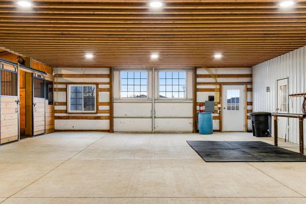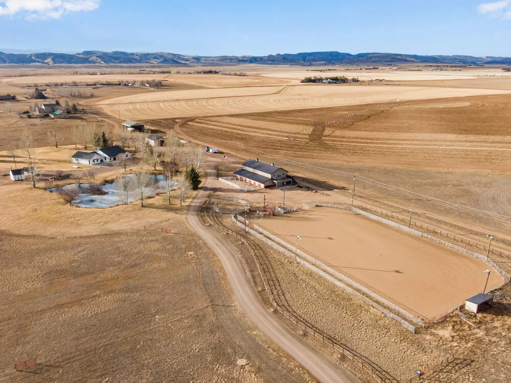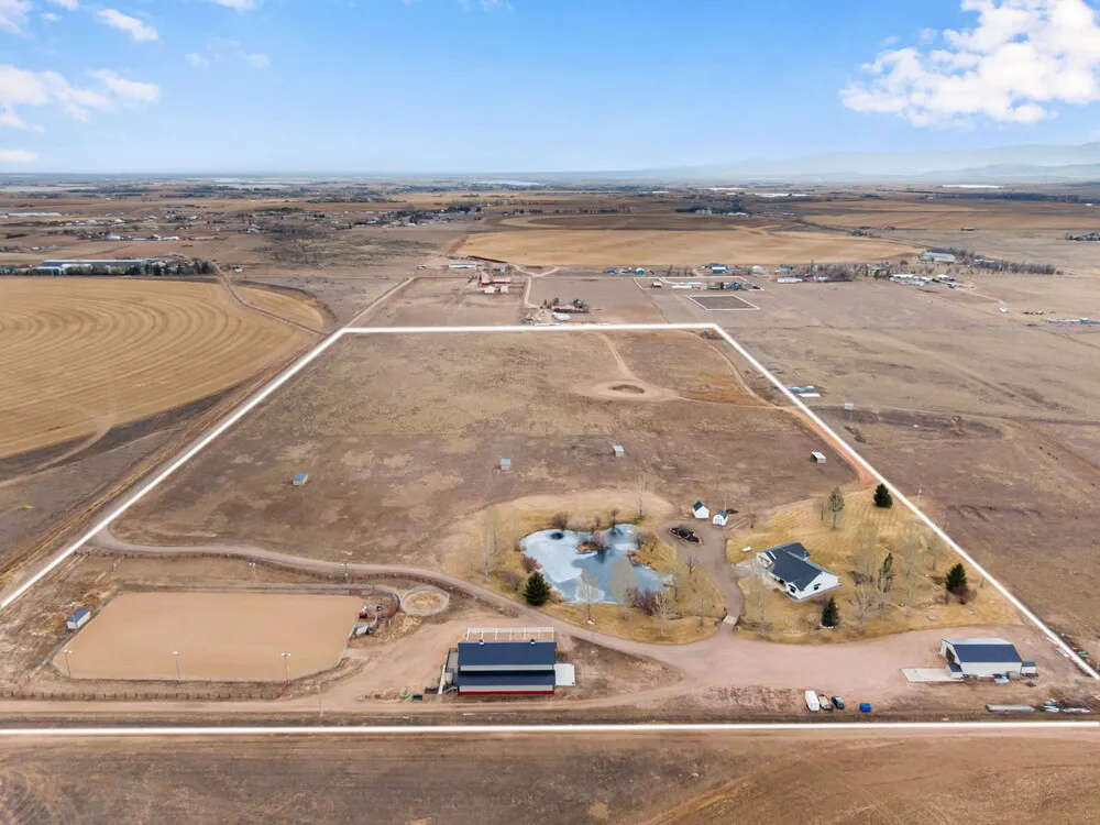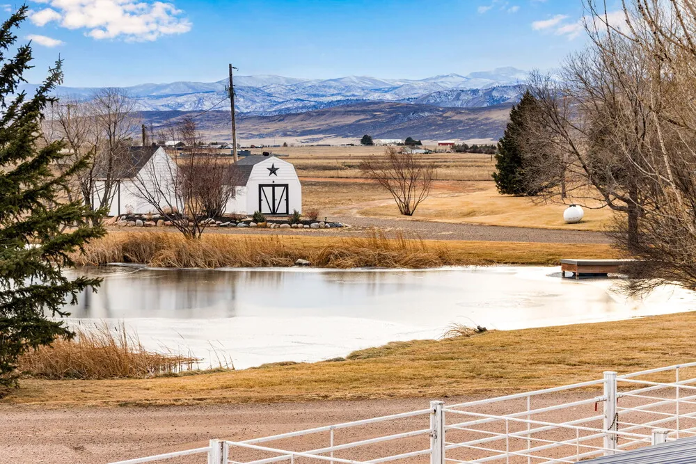 | Open House Sat 12-3pm. Exceptional, fully updated equestrian estate on 35.669 acres w/ NO HOA, NO METRO TAX & open zoning. Originally built in 1998 & extensively remodeled in 2023, offering privacy, functionality, & panoramic Rocky Mountain views. This rare property features a stocked pond w/ bass, dock, & sitting areas; 4 fenced pastures; 5 loafing sheds; round pen; 240' x 137' lite riding arena; pump shed; 3 storage sheds; & 8 exterior water hydrants, all accessed by a private driveway set back a .5 miles from the county road for privacy. Equestrian amenities are anchored by a 3,888 sq ft barn featuring 6 stalls each w/ private runs, tack room, wash bay, hay storage, a 2,232 sq ft loft, main-level concrete patio, & upper-level observation deck. A 1,545 sq ft detached drive-through RV/boat garage & shop features 220V, added electrical, air compressor, & included shelving, cabinets, & workbench. The park-like setting includes mature landscaping, sprinkler & drip systems, wood-burning fire-pit, horseshoe pits, expansive east-facing patios for sunrise views, & west-facing covered & uncovered patios w/ ceiling fan overlooking nightly Rocky Mountain sunsets. The primary residence showcases a split floor plan, front office, formal dining, white trim, new windows & doors, upgraded lighting, new paint & carpet. The chef's kitchen features a large island, quartz countertops, SS appliances, 6-burner gas range, commercial hood, double ovens, warming drawer & a walk-in pantry. Living spaces include a family room w/ wood-burning fireplace, oversized bedrooms including a private guest en-suite, 2 beds w/ a Jack-and-Jill bath, & a luxurious primary bedroom w/ retreat featuring a 5-pc. bath, & two walk-in closets. Home also features a massive laundry room designed for everyday efficiency & includes a mini refrigerator & ice-maker. For a full list of features, floor plan, or to schedule a showing, please e-mail brokers. |