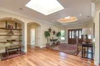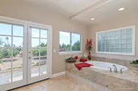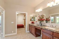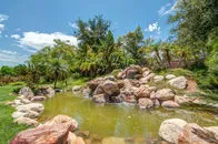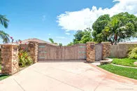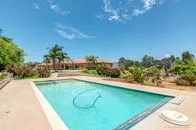 | SOLD for $1,122,150 on June 16, 2016 Two stately gates stand guard over the privacy & tranquility of this fenced 2.48AC estate. 4,450 SqFt single story home provides abundant sizzle yet offers welcoming comfort. Central grand Great Room creates the heart of the home featuring the warmth of chestnut floors, rock FP, entertainment center, soaring wood ceiling w/massive open beams, & invigorated by dramatic curved wall of arched windows. After you pass through the distinctive entry gate, the relaxing sound of water flowing into the inviting entry pond sets the stage for your tour of this property as you traverse the motor court, exit your automobile, and approach the porte-cachere leading to the double door entry. You will be delighted as you catch your first glimpse of the interior of this special home. The gleaming chestnut flooring welcomes you into the oversized foyer and continues into the Great Room and each direction of wide hallways creating a seamless flow. From these entry doors, you are able to look across the length of the magnificent Great Room and enjoy the views made visible by the curved wall of floor-to-ceiling windows at the end of the room. Be aware however that you might not even notice that feature since you will be in awe of the massive wood beams towering above the Great Room. You might be compelled to enter this room, have a seat, and fully experience its ambiance for yourself. The Office is left of the foyer in which the Chestnut floor continues. This uniquely configured Office has rich mahogany stained built-ins designed with separate workstations for 4 people. Continuing along this left wing of the house, you will discover the kitchen, 7'X6' walk-in pantry, dining room, and laundry room facing the rear of the home in order to take advantage of the serene views. In addition to the Office on the front side of this left wing you will find a surprisingly large bedroom (one of four) with adjoining spacious granite & marble appointed bath. This bedroom and the office enjoy the tranquil sounds of the exterior entry waterfall. This wing terminates at the entrance to the limo-sized 31'X30' three car finished garage uniquely designed so that the garage entry is from the rear of the home thus enhancing the curb appeal of the home's exterior front. The cheery Dining Room with coffered ceiling detail is infused with light from an abundance of clear glass windows & doors creating the perfect backdrop from which to enjoy the company of your family & friends. The Dining Room is conveniently located with direct access into the stunning recently enhanced Kitchen. To the cooks delight, the kitchen is wrapped with expansive granite counters & designer basket weave backsplash. The oversized 9'X3'+ island with coordinating yet contrasting granite top is appointed with a veggie sink & downdraft cooktop. Additional enhancements are the dual ovens, built-in refrigerator, trash compactor, dishwasher, three compartment sink (from which to enjoy the view), travertine flooring, recessed lighting, and other delights left for you to discover. A uniquely designed wet bar can be entered from the kitchen and is open to the Great Room providing an understated, convenient venue from which to address the comfort of your guests. As you explore the right wing of the home you will discover 2 more bedrooms & baths in addition to the envious master suite and a handy 6'X6' walk-in linen closet. This brings the total bedroom and bathroom count to 4 of each. One of the bedrooms on this wing is equal to the master suite of many homes. This suite features an 8'X7' walk-in closet, granite topped vanity with twin sinks, bathroom marble floor, and a french door providing access to the rear yard. The gracious Master Suite is just as incredible as you would expect it to be. It is grand yet offers warmth & character . Special features are the built-in entertainment center, rock fireplace framed by floor-to-ceiling windows designed to allow air flow without blocking your view, the dramatic high volume wood ceiling with massive open beams, and the gleaming chestnut floors. For her delight there is a 16'X9' walk-in closet appointed with built-in drawers, multiple height rods, and a cedar lined wall. The spacious dressing area featuring an extra long granite vanity with dual sinks is separated yet adjoining the spa area containing the kohler jetted tub, large dual fixtured shower, and private water closet. Marble, granite, & accent stone enhance the luxurious ambiance of this space. Moving on to outside you will find a pleasant rear lawn area from which to enjoy the views, the pool with spa for relaxation, some family fruit trees, and tons of parking space. Enhancements since 2008 include interior painting, new floor coverings, color coated smooth finish exterior stucco, newer roof, tankless water heater with recirculating pump, heat & air replacements, and flagstone accented reinforced concrete driveway. Other features you would want to notice are the skylights, crown molding, an abundance of storage, enclosed soffits on the main home & stuccoed out building, exterior holiday outlets, water filtration system, prewired for surround sound, intercom system, and wheelchair accessibility. This property offers both a refuge and inspiration in a private relaxed environment. You will not want to miss this opportunity so make sure this home is on your list to view. |