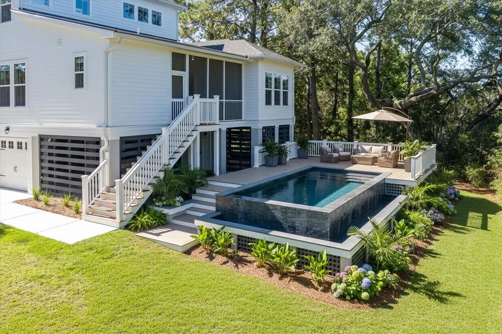 | Modern coastal living without the rules - this newer elevated home offers sleek construction, room to park your boats, and the freedom of no HOA! Built New in 2024, this 5 bedroom 4.5 bathroom elevated drive under (4 car garage) home is 3,400+sqft and sits on a large .61 +/- acre private lot. No HOA, chickens allowed if you'd like, and 3 Traffic Lights from Downtown Charleston! Folly Beach and James Island County Park just around the corner as well. Golf Cart, walk, or bike to Camp Road Middle School, literally at the end of Hale Street. Bring your toys, enjoy your outdoor space, build your pool, work in your gardens or greenhouse, and enjoy easy traffic light access onto Camp Road. Quietly nestled off the main road closer to the marsh with abundant privacy, this is an incredible opportunity to get a 1 year old house with tremendous living space flexibility and outdoor amenities on your own property. The first floor features a bright, open, spacious floor plan with the kitchen completely overlooking the living room and elevated screened porch. Truly a chefs kitchen, the house is tastefully updated with a 36 inch Sub-Zero classic refrigerator, custom fit surround cabinetry, 36 inch KitchenAid commercial six burner gas stove, and wall mounted KitchenAid oven and microwave combo. If you're a coffee aficionado, you will appreciate the dedicated water and waste lines in the kitchen for your home coffee station. ECM Synchronika espresso maker negotiable. A formal dining room is quietly located separately towards the front of the home for relaxed formal entertaining. Also on this level is the primary bedroom with oversized private bathroom, separate sinks, walk in closet, and tile shower. Continuing around the first floor is another large bedroom located on the opposite side of the house with a full bathroom, as well is the home office space at the front of the house, perfect for that home office, library, study, playroom or whatever your lifestyle needs. Upstairs is a secondary large living room area, providing a separate living space on each floor. Bedrooms 3, 4, and 5 are all upstairs complete with 2 full bathrooms and ample privacy for everyone. The home has a 10 year builder warranty in place, a Termite Warranty, a dedicated 50 Amp circuit with 240 V plug charging station in the garage, and the conveniences city utilities. Fresh landscaping around the yard was just completed in October as well as the 1 year builder walk through. This is a chance to get your newer construction dream home on over ½ acre private lot, No HOA, and 3 red lights to downtown Charleston! Plenty of more details and photos available upon request, come and see it today! |