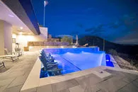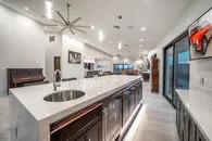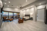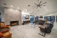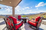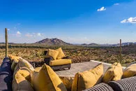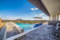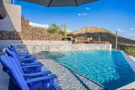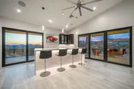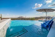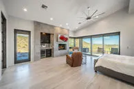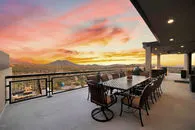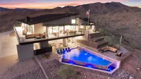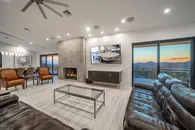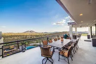 | New co-ownership opportunity: Own 1/8 of this turnkey home, professionally managed by Pacaso. Soak up desert views in this gated mountaintop retreat with a wrap-around balcony & walls of glass. Sleek, contemporary architecture creates seamless indoor-outdoor living, starting in the spacious great room. The gourmet kitchen has stainless steel appliances & a quartz waterfall island. The dining table & executive bar make entertaining easy, as does the cooled whiskey and wine room. The primary suite features a fireplace, wine fridge & doors to the patio. The en suite bathroom has a soaking tub, tiled shower, dual sinks & a makeup vanity. An office & game room opens to the infinity pool & patio. The home, which includes an elevator, comes fully furnished & professionally decorated. |
