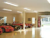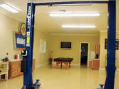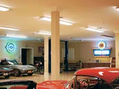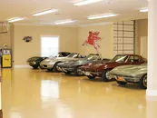 | This garage car property is in the Showcase Registry category on CarProperty.com. You can showcase your Car Property in this category and share your fun, exciting and very personal garage car property with people all over the world. It's free for a one year listing in the registry or a small fee if you want to feature it. Either way, people will be able to experience your garage with you. Just list your place in this category like all of the other categories, it's as easy as our Easy Order Form www.carproperty.com/choose_cat.php _____________________________________________ "I wanted a garage where I could work on anything I own. But I also wanted a nice clean showroom type of atmosphere to show off the cars, my memorabilia, and a place for my car buddies to come over and comfortably hang out. It also had to be big enough to house a future motor home. Living in the hurricane state of Florida, I also wanted to build a garage that could withstand whatever Mother Nature decided to dish out. "I now have the perfect garage as I envisioned it prior to the build. A big part of the garage is a 22-foot driveway between five cars on each side with enough room to expand my collection in the future. The driveway serves as a great dance floor when we have neighborhood sock hops. Everybody just loves the atmosphere when the lights are off and the neon lights are on, with all of us surrounded by old Corvettes. So I guess it's a garage, a showroom, and a party place. What more can you ask for?" By The Numbers Garage Specs Size 78'x72' detached garage 5,600 square feet 11' 6" ceiling height 16' 0" ceiling height in motorhome area 5 full car bays on each side; 9'x18' with a 22'-wide drive between them Tool Room: 18'6"x15' Office: 15'x15' Bathroom: 15'8"x6'8" Motorhome area: 15'x43'6" Construction Building is concrete block and stucco with stone in some areas. Walls are 8" concrete block with tie columns and tie beams. Tie beams are 8"x16" with two No. 7 rebar top and bottom with No.3 bands at 12" O.C. Trusses are 2"x6" with a 2"x8" bottom cord on a 71/412 pitch. Trusses are designed to give 30'x20'x8' clear storage area in attic. All walls and ceiling are fully finished with 51/48-inch fire-code drywall. Three 4'x5' windows and nine 2'x6' windows are all Marvin aluminum high-impact windows. Entire garage has 8" wood base and 8" crown molding throughout. All windows have wood trim, marble sills, and wood-type Venetian blinds. Doors 1 - 8'x12' 1 - 12'x14' The doors are attached to 8"x20" concrete reinforced columns on each side with an 8"x24" reinforced concrete header beam. Doors are 2"-thick steel/foam/steel fully insulated with vinyl perimeter seals. No windows due to South Florida building codes. Lift master electric door openers. Floor 8-mil ply moisture barrier on 100-percent compacted lime rock. 6" concrete slab with No. 5 rebar and 6" O.C. each way, poured monolithic with a 12"x24" footer with four No.8 rebar continuous. Floor Coating: Epoxy / Urethane System by Pro Painting of Hollywood, Florida The floor was steel shot-blasted to clean and abrade the surface to a profile similar to 80-grit sandpaper. This ensures proper adhesion of the new flooring system. Next, a penetrating epoxy sealer was applied. Then all cracks, voids, pinholes, and so on were patched with epoxy patching cement. Next, two coats of High Performance Epoxy were applied twenty-four hours apart, tinted a light tan color with a dry film thickness of 9 mil. This provides a smooth solid base for the finish coats. Then two coats of Aliphatic Urethane tinted the same light tan with a dry film thickness of 5 mil were applied 24 hours apart. The urethane is extremely durable and resistant to abrasion, chipping, and resistant to all automotive chemicals, fuels, and oils. High-gloss finish will not fade and cleans very easily, just mop or wipe. Water Hot and cold water in wash-up sink in work area and in the office bathroom for sink and shower. Lighting Eighteen 8' twin-tube fluorescent ceiling mounted fixtures. Eight 4' twin-tube fixture and four high hats in office and four in entry foyer. All are bank-switched as needed. Lift Bend Pak Model XL 94C128, 9,000-pound capacity with 220V power unit and overhead micro switch shut off. Alarm System This is integrated in with the main house alarm. It is controlled from the main house or the garage. If tripped, it sounds off in the house as well as the garage. It has the normal monitored phone call to the police department, plus a radio transmitter located in the attic that is separate from the phone system to the police so they get two signals each time, all with battery backup and emergency generator. It also has various cameras and sensors around and about. Stand-By Power A 60kw Cummins diesel-powered generator with a 350-gallon tank, fully automatic system shared with the house. Floor Drain 1 floor drain to wash cars inside to escape the heat or the rain. Air Conditioning 1 Lennox 3-ton unit 1 Lennox 4-ton unit Both have two-stage compressors with variable speed air handlers. Programmable thermostats with built-in humidity controls. Both are controlled separately. Both units have 9kw programmable heaters. The office and bath have a 1-ton Lennox unit that is controlled separately. The garage also has an air changer and carbon-monoxide alert system. With this system, you can start your car and continue to work on it with no fear of carbon-monoxide poisoning. When the carbon-monoxide level reaches a certain point, the air changer kicks on and starts sucking out the old air and pumping new air in and shuts off when the air is clear. Or you can turn the system on manually before hand and not set off the alarm. The air changers are manufactured by Greenbeck. Toxalert manufactures the carbon-monoxide alert system. It can be controlled manually by four switches in the office or automatically by the Toxalert system. How the A/C system works: There are four separate units located in the attic. All h
