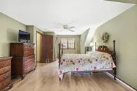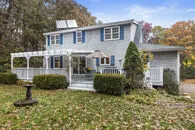 | If you're looking for a HUGE garage, your search ends here! Fantastic 30'x36' heated, insulated Morton bldg has 1349 s.f. which includes loft, 14' garage door & 16' ceilings. Well maintained Cape style home sited on 3 acres of wooded privacy with lovely english country gardens. Kitchen with breakfast bar and dining area open to living room with hardwood floors and propane, masonry fireplace. 1st floor bedroom next to updated full bath. Oak stairs to 2nd floor; front to back primary bedroom, 2 additional bedrooms & additional updated bath. Enjoy the surrounding nature from the heated sunroom or from the 36'x12' deck. Updates include electrical service, roof, insulation, well pump & newer boiler. OWNED solar panels for hot water. Whole house fan. Unfinished, walk out lower level has additional fireplace & FHW heat. So many possibilities with a workshop on your property; a rare find. Welcome home! |