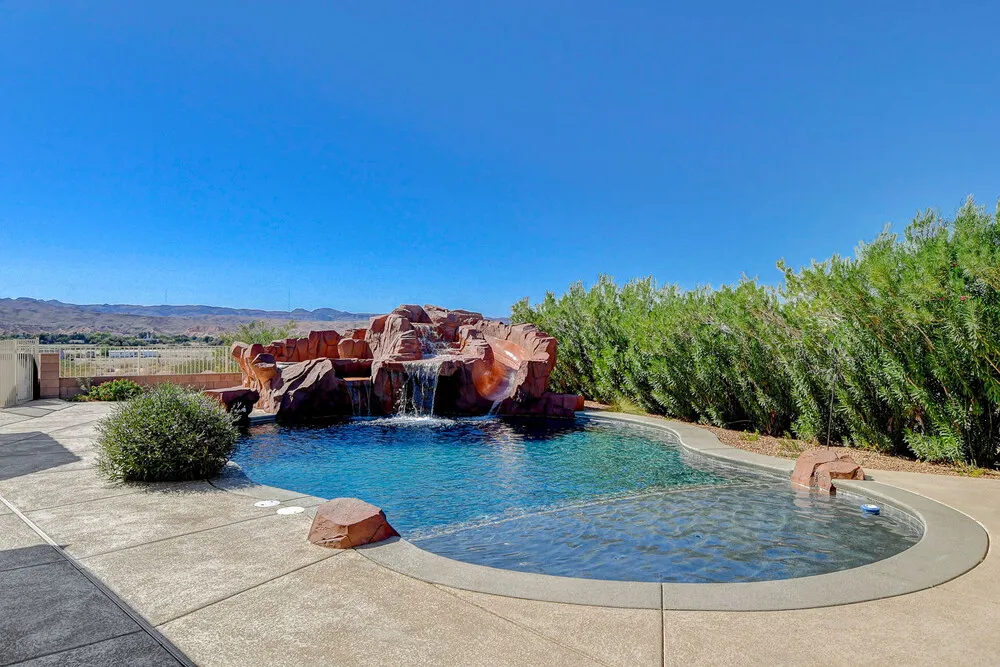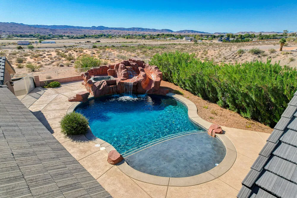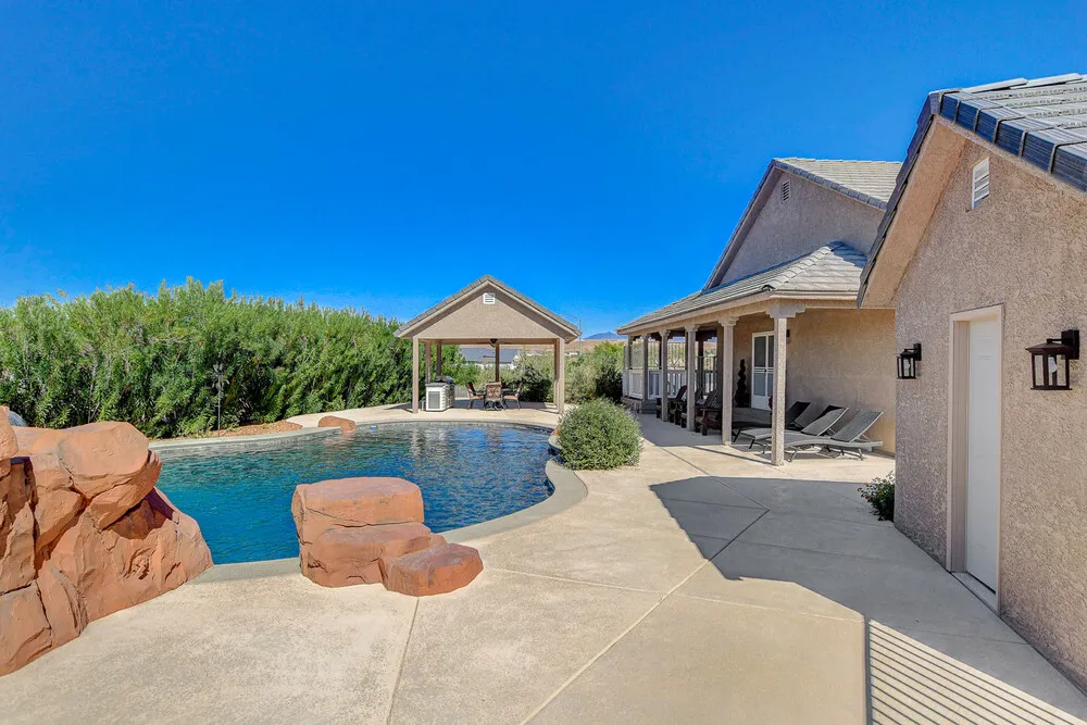 Stunning 1.83-acre horse-zoned estate that blends luxury, privacy, and pure fun. The kitchen and spa-like primary bath are freshly remodeled, with new paint, carpet, and wood-plank tile setting a crisp, modern vibe. This home is 100% move-in ready. There are 4 dedicated bedrooms with oversized closets plus a homeschool room/den, playroom, craft room, and a HUGE dry storage area. Outside, a refreshing saltwater pool with spa and slide overlooks mesa sunsets. You won’t miss a moment (or burn your feet!) thanks to 3,100 sf of Kool Deck and a brand-new cabana already plumbed for an outdoor kitchen. And yes—there’s even a private guest/pool house with its own shower and bath. Now for the real showstopper: the MASSIVE 60x80 insulated RV garage/shop. It fits 9 cars with ease, has full RV hookups and dump, plus a two-story office/warehouse, washer/dryer hookups, and—of course—another bathroom. A dream setup for car collectors, entrepreneurs, or anyone who wants space that truly works. The extras are endless: three shaded animal pens, hen house (negotiable chickens for farm fresh eggs every morning), batting cage, garden, mulch field, auto sprinklers, and more. Energy efficiency comes built-in with 4 new AC units, solar screens, and smart apps. This rare sanctuary borders state-owned land and offers a wraparound porch with year-round views. Here you’ll find bright stars in night sky, American flags lining the main street, and neighbors with the perfect blend of leave you alone or make you homemade soup if you sick. Kids play outside in Logandale and if you hear a cannonball on a Friday night, don’t worry—it’s just the whole town cheering on the Moapa Valley High School Pirate football team. Logandale is Clark County’s best-kept secret—and this is your chance to live it. P.S. Check out our website WWW.MVPirateBooty.com to see more photos, a video of the estate and a link to the full listing. P.P.S. Cheaper property tax than Texas, No Federal Income Tax in NV & 300+ days of sunshine a year. Do yourself a favor and consider the quality of life this property provides! |