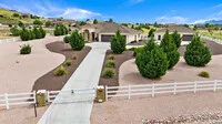 | Listed with Realty ONE Group Mountain Desert; this 2016 Custom 2825SF Residence with a detached 2140SF heated and cooled 12 Car Garage w/5 Ton AC and whole house exhaust fan was built for a discerning Car Collector. The single level residence is a well planned design situated on 3+ acre parcel w/gated entry; all concrete drive parking pads in addition to a 1,008SF 3.5 Car Garage attached to the home. The residence features custom finishes, tall ceilings and 36''W doors and an abundance of windows for lots of natural light. The split plan has 2 Main Suites on one side with 2 Guest Rooms on the other. A double sided fireplace between the Living Room and Family Room is another great feature. Formal Dining in addition to a Breakfast Nook, well appointed Kitchen with Large Walk in Pantry and separate Laundry Room | |