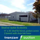 | SOLD AT AUCTION - April 20, 2012. Equestrian estate, custom home, 3,500± sf, 3 BR, 3.5 BA, pool, hot tub, 2 car garage. Lg 6 car garage w/ heat/air, built to display antique cars. 2 manufactured homes. 21 stall barn; arena w/ lights and grandstand; white vinyl fence; 6 livestock sheds; equipment shed; hay barn and more. | |