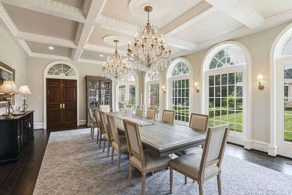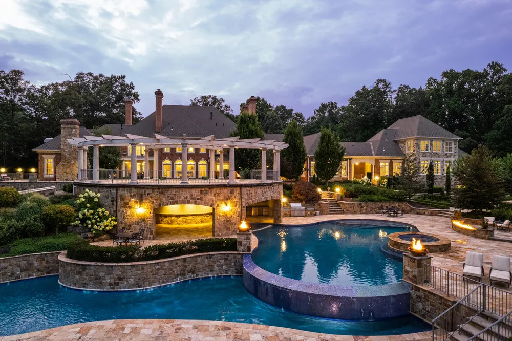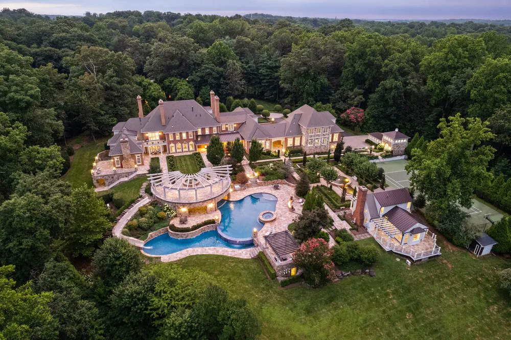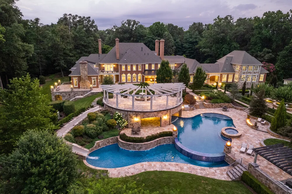 | Welcome to Edgehill Estate—an extraordinary residence that embodies timeless elegance and modern luxury in the heart of Oakton. Set on 11 beautifully landscaped acres, this stately, oversize brick and stone colonial—inspired by the historic Carter’s Grove—offers over 20,000 square feet of meticulously designed living space. This grand residence masterfully blends classic American Colonial design with the highest level of modern luxury, technology, and artisan detail. Every inch reflects unparalleled craftsmanship—from hand-carved Chesney mantels imported from London to walls hand-painted by famed Hollywood designer Harold Grieve. A formal foyer sets the tone with coffered ceilings, a foot of crown molding, custom millwork, plaster medallions, mahogany inlays, and antique wall sconces, guiding you into the heart of the home. The Primary Suite is a wing of its own, featuring dual dressing rooms, a sitting room with coffee bar, a spa-inspired marble bath with a steam shower, a fireplace, and balcony access overlooking the grounds. Designed for both everyday comfort and extraordinary entertaining, the estate includes a chef’s kitchen with Thermador appliances; multiple living rooms, a library, a home gym, a steam room, a sauna, a jetted hot tub spa room, and access to one of the largest residential pools in Fairfax County with grotto waterfall, fire bowls, infitity edge, and slide. The resort-style grounds offer travertine throughout, pergolas, an alfresco outdoor kitchen, a tennis court, multiple fire features, and a three-tiered fountain, surrounded by lush landscaping that blooms year-round. A 13-car garage complex, 3 level Elevator, Chandeliers, Heated, Cooled, Gas, Water access, motor court, Auto detailing in separate building, guest house, elevators, and commercial-grade generator ensure the highest level of comfort, privacy, and preparedness. Edgehill Estate is more than a home—it’s a legacy property offering an unmatched lifestyle of privacy, prestige, and timeless beauty. |