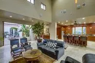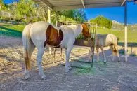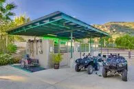 | Welcome to Wild Horse Ranch! This incredible gated property was designed with luxury and function blended into an equestrian estate. Includes a 4BR, 5BA main home w/5,600sf and an addl 600sf detached guest quarters with owned solar electric. This beautifully appointed single level home combines living both indoors and out with pocket doors that allow for entertaining in all living spaces. Open floorplan with luxurious finishes & vanishing doors that lead to outdoor entertaining areas including a fireplace, BBQ, saltwater pool w/waterfall and scenic views! The home has city water & well drilled, 4 fenced pastures, arenas, wash rack, covered hay storage. The master bedroom and additional ensuite bedrooms each have patios and views. The entire home is constructed with concrete and designed with LEED standards, regarding energy efficiency and environmental qualities, additionally the home has a fully owned net metered solar electric system covering 100% current usage. There is a large covered outdoor entertaining area with a fireplace and BBQ that is adjacent to the game room which has a wet bar and opens to the back patio - featuring a large solar heated, salt water pool and spa. There are 4 large fenced pasture areas that can be used for horse, livestock or all terrain vehicles or a vineyard/orchard. In the large detached garages, there are 3 removable stalls with easy access to upper level paddock. Need room for cars? No problem here, there is space for 9-cars, of which a 3-car garage is attached to the main home and a 6-car detached garage. There is a total of 18 on-site parking spots including the garages and driveway. Within the highly acclaimed Poway School District! | |
