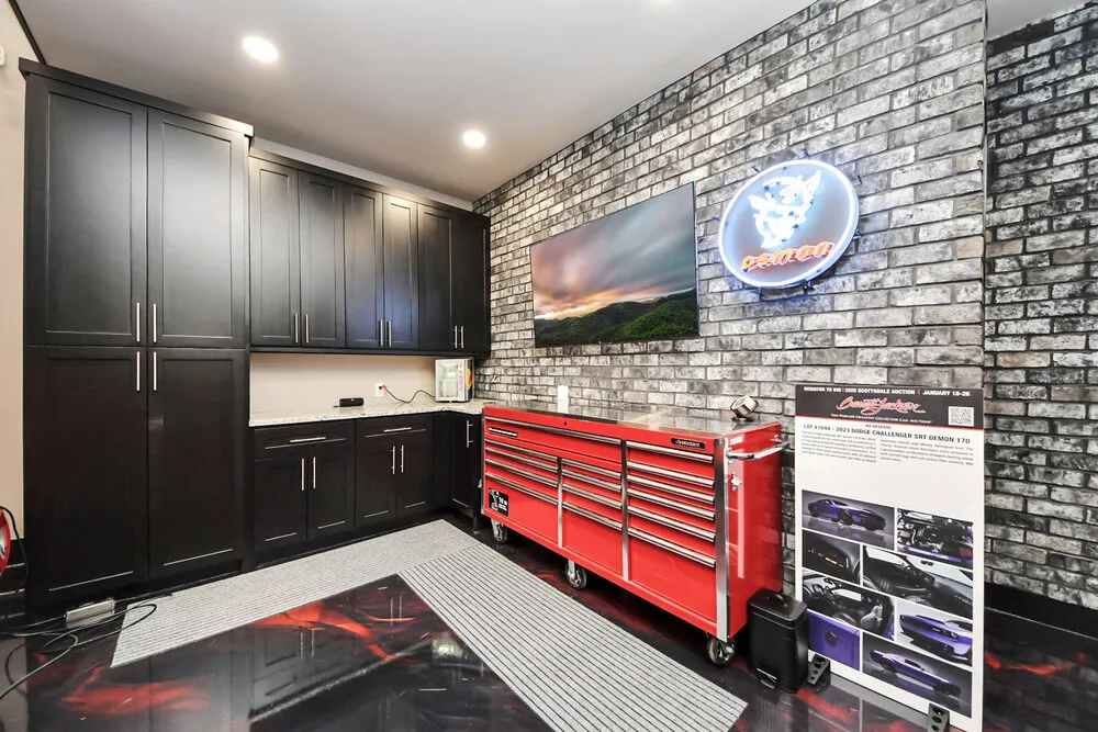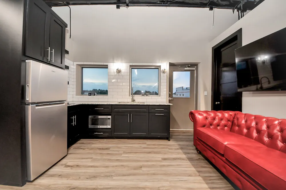 | Discover the ultimate luxury garage condo—an exceptional 30' x 50' suite thoughtfully designed for both functionality and comfort. This high-end space features a fully built-out mezzanine, insulated overhead doors, and fully insulated walls and roof, creating the perfect environment for storage, work, hobbies, or relaxation. Inside, you'll find a stunning full kitchen complete with stainless steel appliances, granite countertops, and abundant cabinetry. The beautifully finished full bathroom offers a walk-in shower and granite vanity for added elegance. The main living area is both stylish and efficient, highlighted by a cleverly concealed Murphy bed that maximizes space without compromising design. Common Amenities include: Exclusive 24/7 Owners Clubhouse featuring a full bathroom with shower, lounge area, TV, WiFi, and kitchenette 24/7 controlled access gates Security cameras and fencing for peace of mind 50' wide drive aisles for easy maneuvering Convenient trash enclosure On-site RV dump station Perfect for car collectors, hobbyists, small business owners, or anyone seeking a premium, private space—this luxury garage suite offers unmatched versatility and comfort in a secure, high-end setting. |