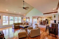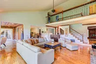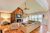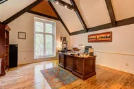 | Private gated retreat on 5.25 acres with a pond & quick access to Greensboro NC attractions! Spacious, open floor plan creates a entertaining space complete with custom-built kitchen cabinets, unique granite counters, 2 dishwashers, 2 ovens, farmhouse sink and 5 burner gas cooktop. Huge living and dining rooms, two story den with a stone fireplace and woodstove. Outside you will find a 40x100 garage/workshop with separate 200 amp service, 10kw solar array, radiant heat/AC, RV storage with dump site and 3400 sf of unfinished space upstairs! Salt water pool, covered patio, garden space and more. | |
